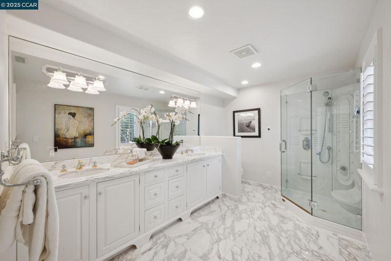 - Bidet, Shower Over Tub, Tile, Updated Baths, Marble, Steam, Stone