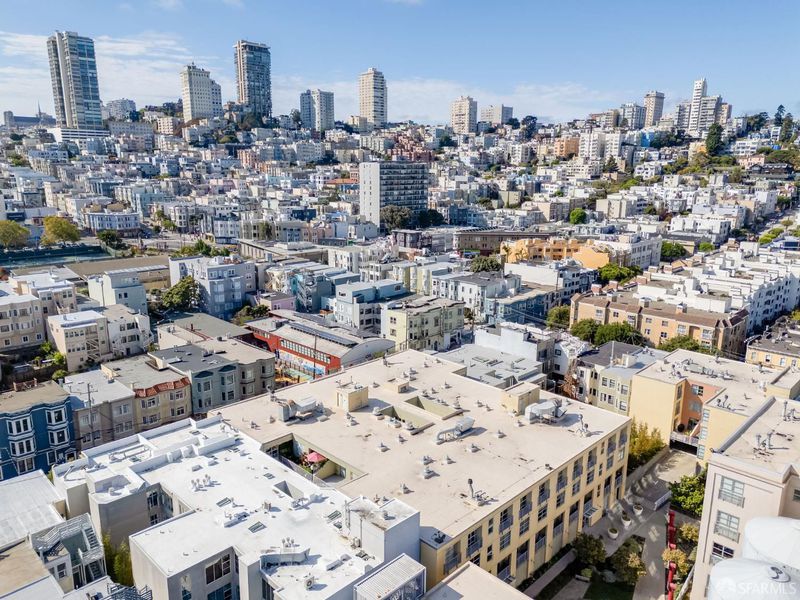 A rare opportunity to own a top-floor view condo in North Beach's coveted Malt House, a landmark building that blends historic charm with modern comfort. This 2BD/2BA residence enjoys sweeping south-facing views & a thoughtfully designed layout, flooded with natural light through oversized windows. The open-concept kitchen seamlessly connects to the dining & living areas, creating an ideal space for entertaining. Both bedrooms are generously sized. The primary suite stands out with dual closets, including a walk-in, a spacious en-suite bathroom, & its own top floor private terrace, 1 of only 2 in the building, offering picture perfect views of Coit Tower, Transamerica Building, Saints Peter & Paul Church, & Russian Hill. Additional highlights include in-unit washer/dryer, a full guest bathroom, assigned parking, & storage. The Historic Malt House was converted into a luxury 88 unit complex, uniquely featuring an internal private park setting in the center of its complex, crowned by two of the factory's original grain silos & a 45-degree-angled flume carrying water to a basalt lava stone fountain. Nearby public transit, Trader Joe's, Washington Square, Joe DiMaggio Playground, North Beach Library & Pool, the waterfront, & iconic dining along Columbus Avenue.