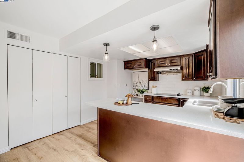 This beautifully remodeled townhouse is ready to move in! Kitchen features newer cabinets, quartz counter tops, sink, faucet, recessed lighting, new electric stove, new dishwasher. The upstairs bathroom has a newer vanity, countertop, faucet, tile floor. The convenient half bath on the main level has also been remodeled. The bedrooms are large and have upgraded carpet, mirrored closet doors and blinds. The in-unit laundry closet has hook up of washer & dryer and shelving for storage. The spacious living room and kitchen have newly Luxury Vinyl Plank. And there’s more... upgraded dual pane windows and sliding door, interior panel doors, light fixtures, ceiling fans and interior paint. The fenced backyard has a garden area, storage shed and newer fence. There are 2 parking spaces - one covered and one uncovered, lots of street parking. Low HOA of $335 a month (included Water Bill). Just minutes to San Leandro Marina restaurants, walking or biking trails along the water, and Monarch Bay Golf Club - or head to historic Downtown San Leandro shopping, restaurants, and entertainment. Commuter friendly near 880, 580 and BART station.