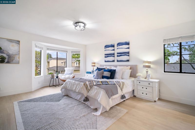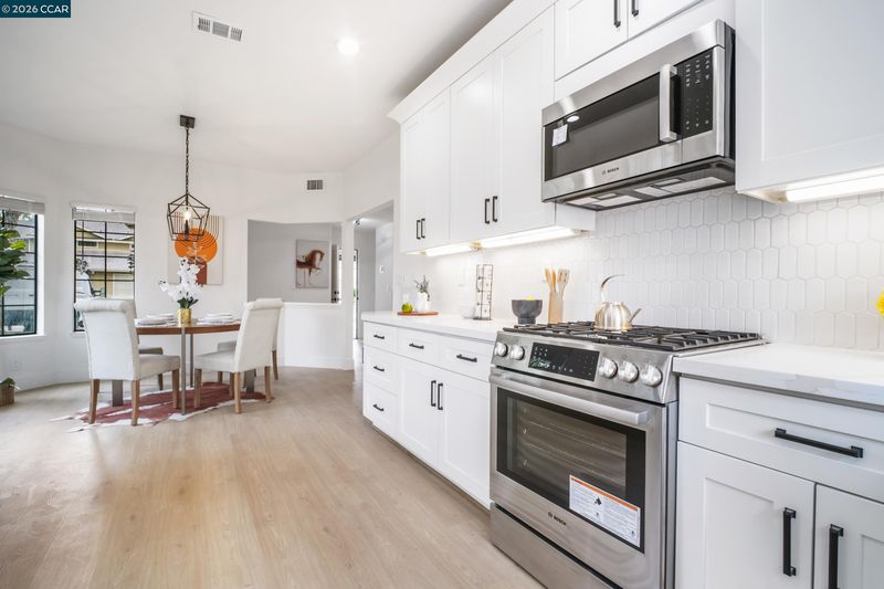 Fully renovated detached home in Fremont! High ceilings, luxury vinyl plank floors & recessed lighting throughout. Bright living room w/cozy fireplace & sliding door to the outdoors. Chef's kitchen features brand-new Bosch stainless appliances, 5-burner gas range, quartz counters, white shaker cabinets w/matte black hardware & hexagon tile backsplash. Spacious primary suite w/bay window, spa-inspired ensuite featuring dual sinks, quartz counters & walk-in shower. All baths fully updated w/granite counters & matte black fixtures. LG washer & dryer included. Steps to community pool, BBQ area, w/visitor parking front & rear. Move-in ready!!