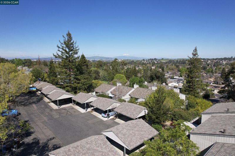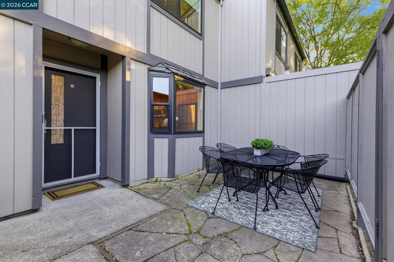 Spacious three-bedroom townhouse at the end of a cul-de-sac in a gorgeous, wooded setting. This beautiful home has level entry, and upstairs bedrooms. Enter through the relaxing flagstone front patio area that offers multiple storage closets. On the ground floor, find your main living space, complete with an updated half bathroom for convenience. An updated kitchen boasts beautiful natural wood cabinetry, granite counters, stainless single basin sink, vinyl tile flooring, all stainless-steel appliances, bar, and breakfast nook with bay window. The inviting great room area offers a formal dining space, recessed LED lighting, brick fireplace with gas starter, designer paint, and a sliding door to rear patio plus artificial turf yard. Upstairs, you’ll appreciate the convenience of three bedrooms plus two full bathrooms. Escape to the large primary suite with soaring ceilings, slider to balcony with Mt. Diablo views, two large closets, updated vanity, and a solid surface stall shower. Other highlights include: new roof in 2025, air conditioner replaced in 2014, Inside laundry room, modern textured ceilings, dual pane Simonton windows, and two-car carport. Conveniently located to Hidden Valley Park, HWY 4/680 commute, K-12 schools, community college, shopping, restaurants and more!