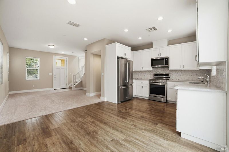Wonderful Cotati location! This beautifully updated 3-bedroom, 2 full bath, and 1 half bath home offers comfort, style, and convenience. The primary suite features double sinks and a spacious shower, while the hall bath includes double sinks and a shower-over-tub. The updated kitchen shines with stainless steel appliances including Refrigerator, a gas stove, microwave, dishwasher, quartz countertops, decorative tile backsplash, and newer cabinetry. Fresh interior paint, new carpet and vinyl flooring, plus recessed lighting creates a bright and modern feel throughout. Enjoy year-round comfort with air conditioning and a tankless water heater. Step outside to the private backyard with a paver patio, perfect for relaxing or entertaining. Additional features include a tandem 2-car garage, and stackable washer and dryer conveniently located in the closet. Ideally situated close to everything downtown Cotati has to offer, with HOA dues of just $139/month.