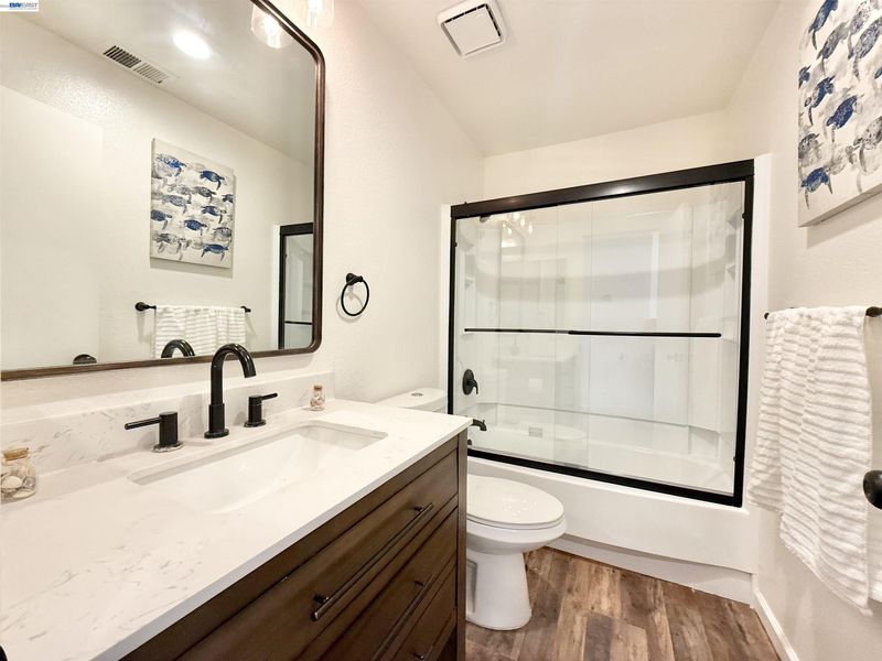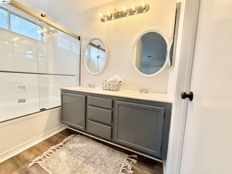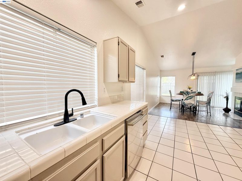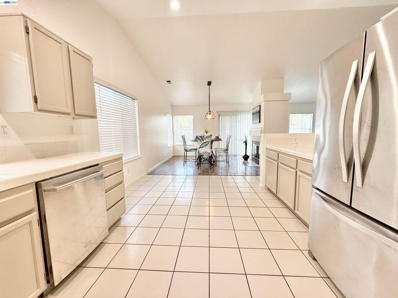 - Dishwasher, Gas Range, Microwave, Refrigerator, Tile Counters, Gas Range/Cooktop