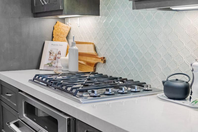 - 220 Volt Outlet, Cooktop - Gas, Countertop - Quartz, Dishwasher, Garbage Disposal, Hood Over Range, Oven Range, Pantry