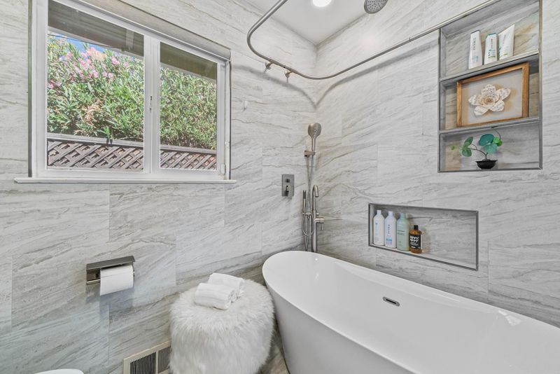 Welcome to your dream home in the heart of Sunnyvale! This stylish fully renovated single family home blending classic architecture with modern design, offers abundant natural light through oversized dual-pane windows, fresh painted in 2023. The spacious living room features hardwood floor, Italian-tiled fireplace wall, new custom shutters, and LED recessed lighting. The gourmet kitchen is equipped with professional-grade stainless- steel appliances, luxury quartz countertops, high-end custom cabinetry, and elegant backsplash tile wall. A spacious pantry, updated Italian porcelain tile media wall, and motorized curtains for slider enhance the open kitchen- dining- family room combo, perfect for everyday living and entertaining. The primary suite includes dual closets, work desk, and a spa-like bath with radiant heating, Jacuzzi tub, and smart bidet toilet. Guest bedrooms are bright and spacious, while the updated guest bathroom showcases modern design with an elegant full-tile wall and a bathtub & overhead shower combo. Outdoors, enjoy a private backyard with gazebo with seating area, perfect for California living. Finished garage with ample storage, laundry, sink and a new garage door. Conveniently located near top schools, parks, shopping, Caltrain, and major tech hubs.