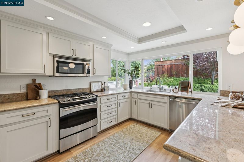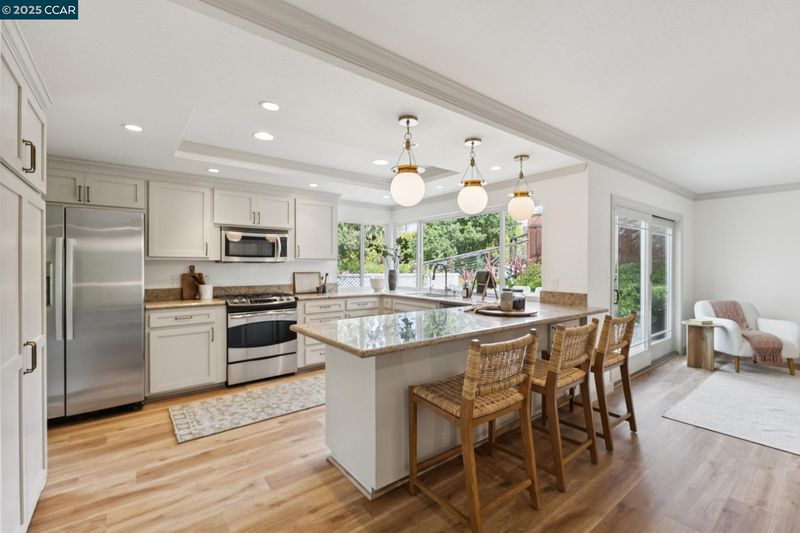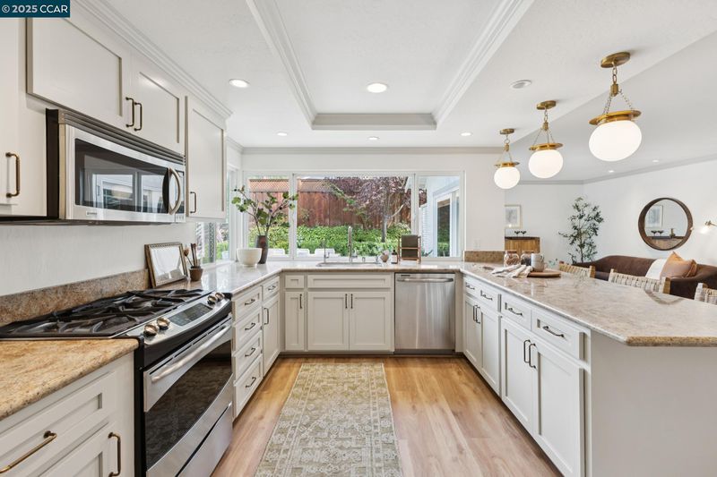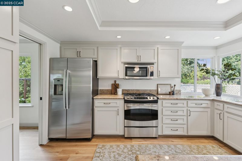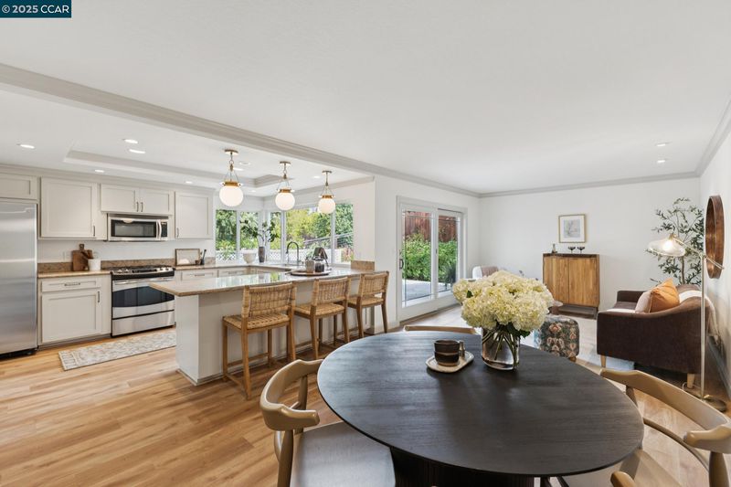 Livorna Elegance! This beautifully reimagined, 4 bedroom, 2.5 bathroom home blends timeless elegance with modern comfort. Offered for the first time by its original owner, this home in the coveted Livorna Estates of South Walnut Creek is framed by serene hillside views. It's just around the corner from Rudgear Park with tennis, pickleball, basketball, and playgrounds. Fresh paint, new flooring, designer lighting, and dual-pane windows enhance comfort and style. The updated kitchen features a gas range and newer appliances. An expansive three-car garage adds convenience and storage. The private, low-maintenance yard invites peaceful evenings and effortless entertaining, with room for play, a grass lawn/garden, or even a separate office/studio. Award-winning Alamo Elementary is within the neighborhood, and easy access to Highways 680 and 24 ensures easy commuting. Nearby, downtown Walnut Creek, Alamo, Lafayette, and Danville offer dining, shopping, and endless trails. What truly sets this home apart is the community itself—Livorna Estates is a one-of-a-kind neighborhood - Livorna pool gatherings and Dolphins swim meets, children with backpacks heading to school, Halloween block parties, and evening dog walks, create a sense of connection that is simply unparalleled.