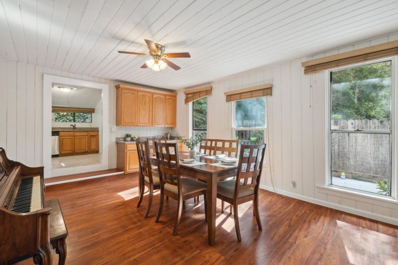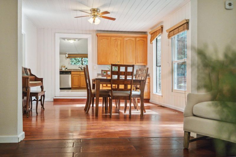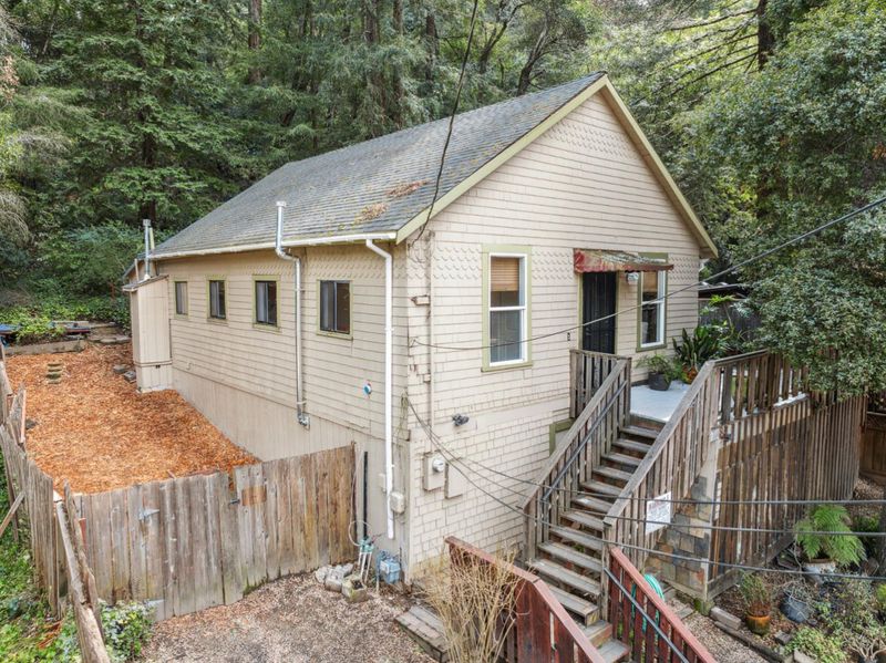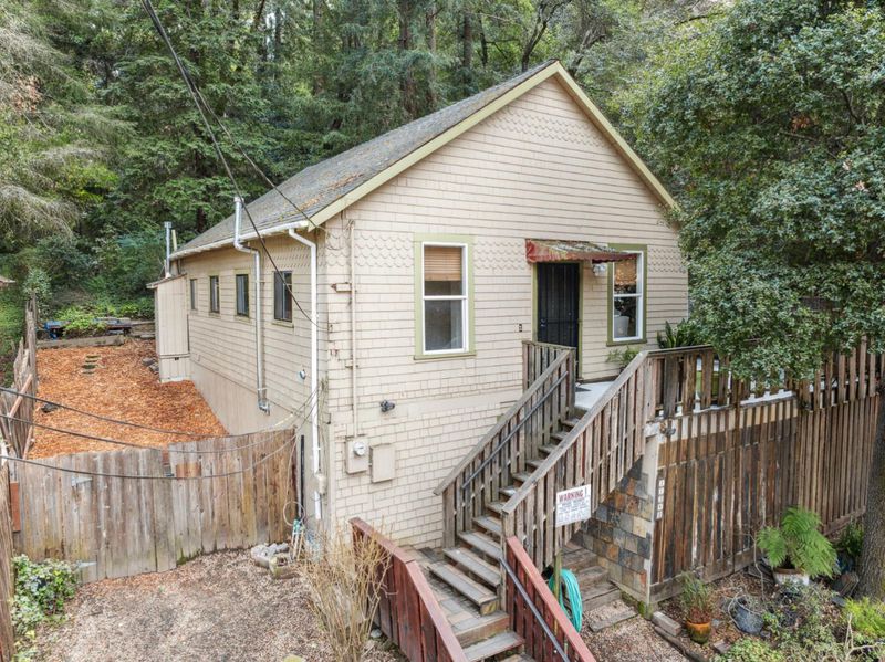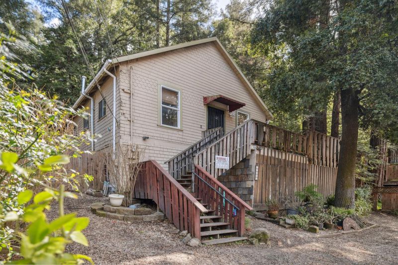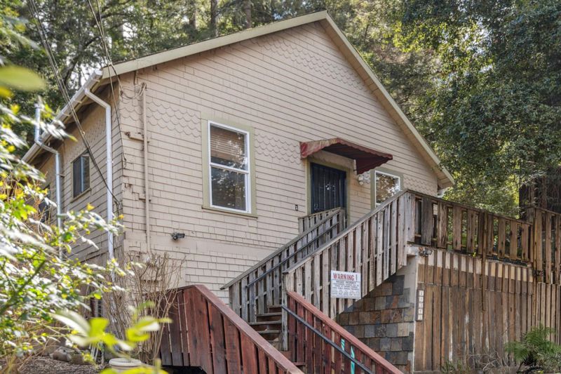 Located just behind the historic Brookdale Lodge, this charming 3-bedroom, 1-bath home offers a warm and inviting retreat. The kitchen features a newly installed gas oven, while hardwood floors add timeless character throughout. The downstairs space presents an exciting opportunityconvert it into a studio unit for additional income or provide a private haven for long-term guests. Outside, the spacious wrap-around deck is perfect for hosting lively BBQs or simply relaxing as you take in the serene beauty of the surrounding redwood forest. Conveniently located between downtown Ben Lomond and downtown Felton, you'll enjoy easy access to popular spots like Aroma Restaurant, Emerald Mallard and Mountain Feed and Supply.