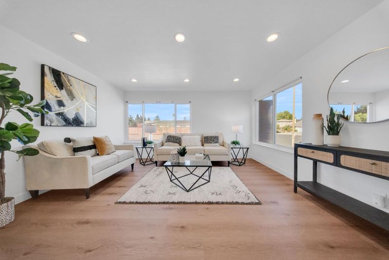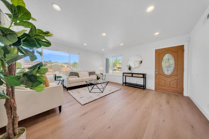 LOVELY HOME ON LARGE CORNER LOT ALERT! This East facing home brings in an abundant amount of Good Energy and Natural Light throughout! This is a very lovely, cozy and minimalist home for any family to enjoy and entertain family and friends throughout the year. This home includes, New Kitchen Cabinets, Designer Quartz Waterfall Countertops, Stainless Steel Appliances, Central Air Conditioning, New Luxury Vinyl Planks Flooring, Double Pane Windows, Floating Bath Vanities, LED Lighting, New Epoxy Garage, New Paint, Asphalt Shingle Roof, Low Maintenance Landscaping, Professionally Installed Quality Artificial Turf w/ Warranty and many more! It is located in the highly desirable, family oriented and pet friendly Martinvale-Vineyard Santa Teresa neighborhood. Its only minutes to many daily conveniences such as banks, grocery markets, Costco, coffee, restaurants, DMV, Kaiser, Santa Teresa County Park and Trails, Golf and many more! This cozy home would be a wonderful home for small families that like to have extra bedroom for work or guest and/or for someone who's looking for a single level home for their retirement. Also, this home includes 1 year Home Warranty! For select qualified buyers with home, we have Buy First Sell After Option Available for qualifeid buyers.