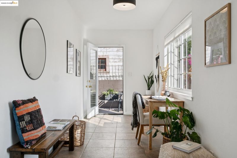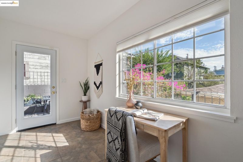 Charming 2-bedroom, 1-bathroom home designed for easy living. Centrally located, this property is blocks away from Dimond District shops and restaurants, parks, public library, freeway, and public transportation. This home is anchored by a welcoming living room dining room combo with a decorative fireplace. A well-appointed kitchen provides ample counter space and storage. Off the kitchen, discover an additional versatile space ideal for an office, music nook, or crafts corner. A glass door at the end of the room offers abundant natural light and opens to an inviting sunny patio for al fresco dining or a quiet afternoon nap. Two bedrooms with functional closets. Refreshed bathroom with skylight over the tub. This home is a blend of charm and practicality - ideal for those looking for the low maintenance of a condo with the privacy and independence of a detached home.