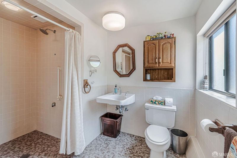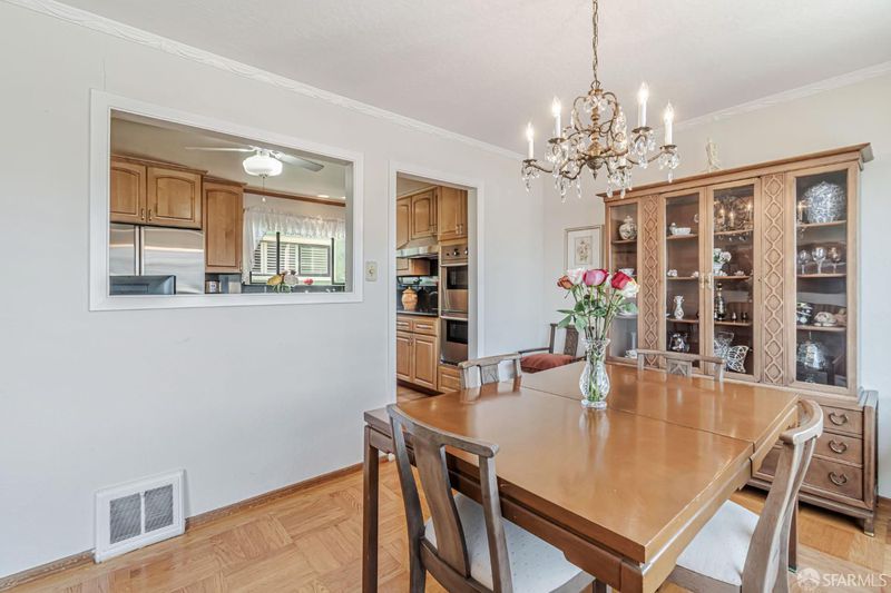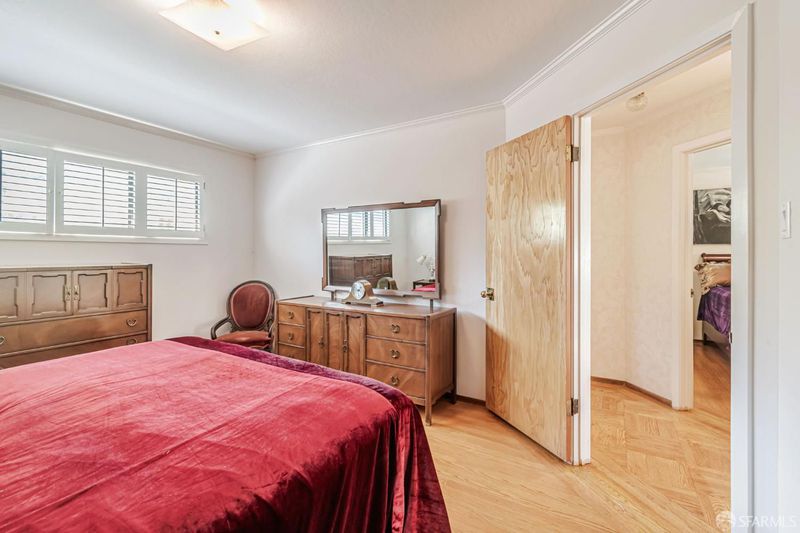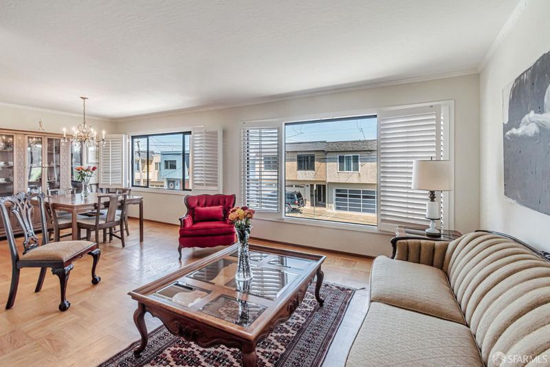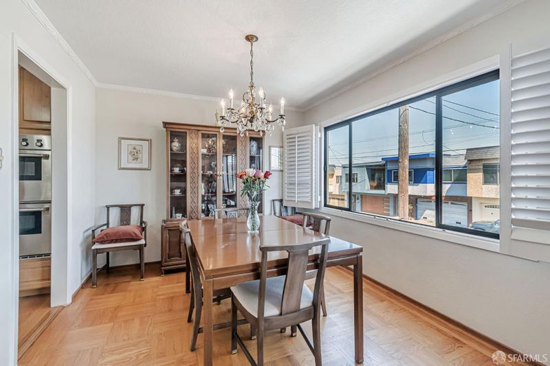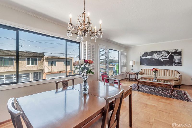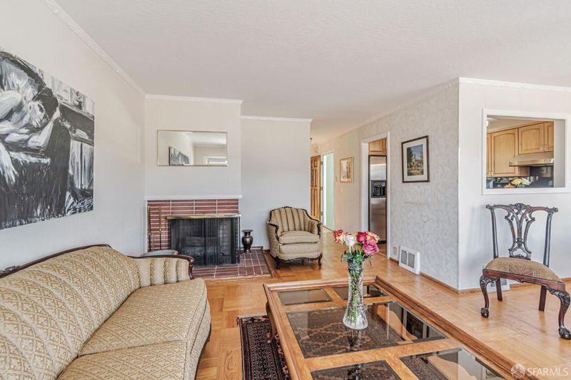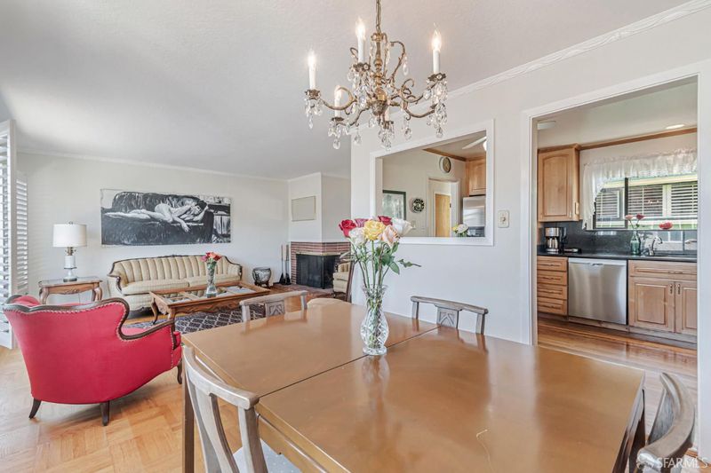 Marvelous Home! For the first time in 67 years, this beloved family home is available. Built in 1958 with the solid construction of its era and lovingly maintained ever since, it sits on one of the best blocks in the neighborhoodjust a half block from the park. Upstairs, you'll find a light-filled floor plan with beautifully maintained parquet floors featuring three spacious bedrooms and one bathroom: stall shower, separate tub and skylight. The inviting living room with fireplace that captures partial bay views flows seamlessly into a formal dining room, while the bright eat-in kitchen provides the perfect hub for entertaining. The lower level offers incredible flexibility, with a two-car garage and a master suite with ADA shower that opens directly to the private backyardideal for entertaining, gardening, or simply relaxing outdoors. Interior access from garage parking to all living spaces. Lovingly updated over the years, this timeless home combines mid-century quality with modern comforts, all in an unbeatable location close to parks, schools, and neighborhood amenities.