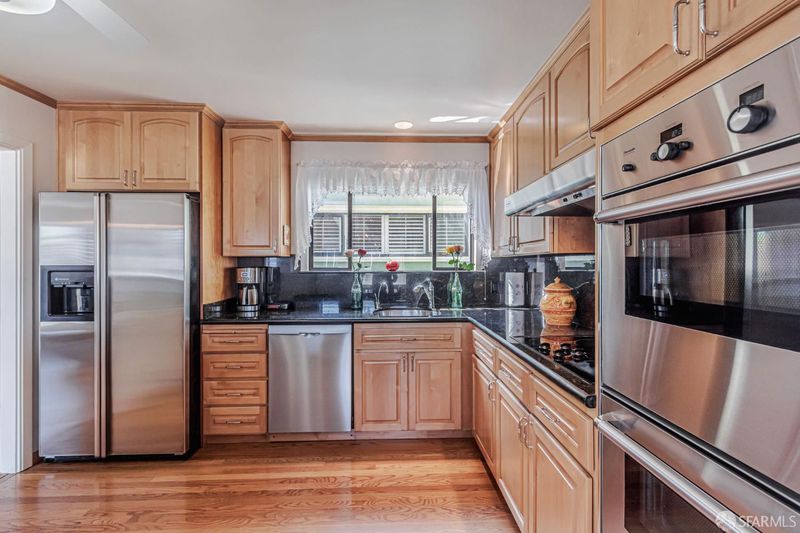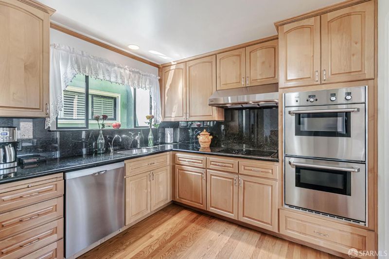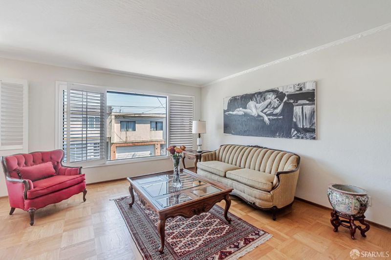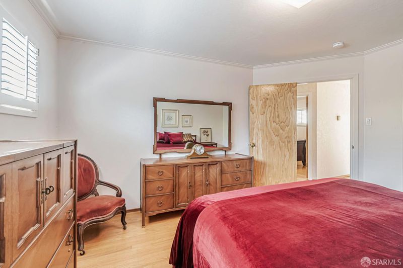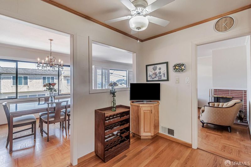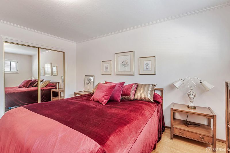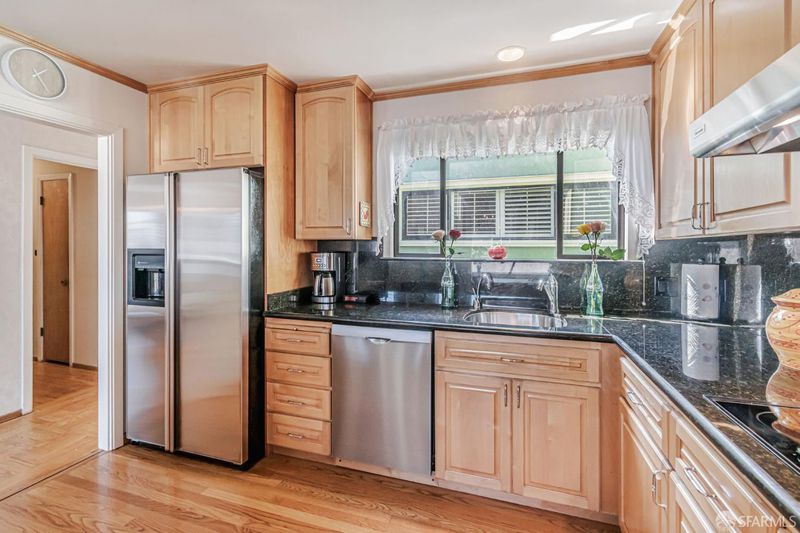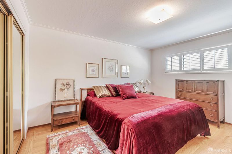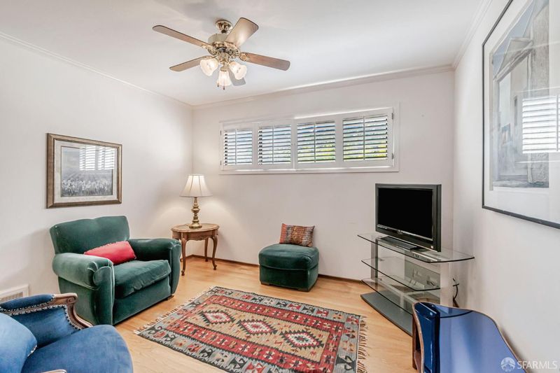 Marvelous Home! For the first time in 67 years, this beloved family home is available. Built in 1958 with the solid construction of its era and lovingly maintained ever since, it sits on one of the best blocks in the neighborhoodjust a half block from the park. Upstairs, you'll find a light-filled floor plan with beautifully maintained parquet floors featuring three spacious bedrooms and one bathroom: stall shower, separate tub and skylight. The inviting living room with fireplace that captures partial bay views flows seamlessly into a formal dining room, while the bright eat-in kitchen provides the perfect hub for entertaining. The lower level offers incredible flexibility, with a two-car garage and a master suite with ADA shower that opens directly to the private backyardideal for entertaining, gardening, or simply relaxing outdoors. Interior access from garage parking to all living spaces. Lovingly updated over the years, this timeless home combines mid-century quality with modern comforts, all in an unbeatable location close to parks, schools, and neighborhood amenities.