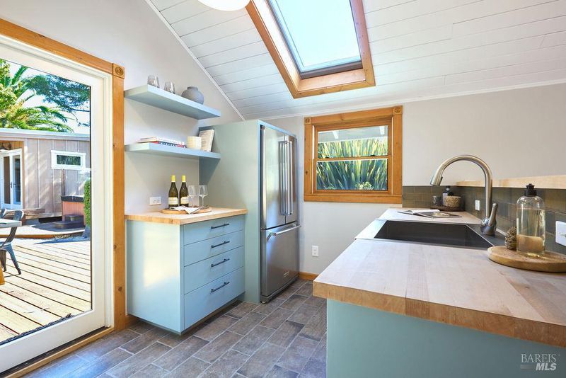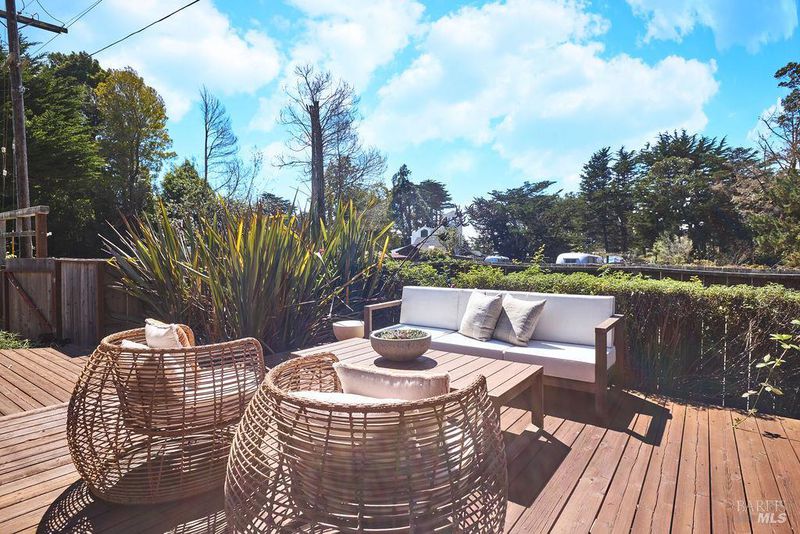 Coastal Retreat on Bolinas' Big Mesa - Main Home + Guest Cabin on 12,000 Sq. Ft. Lot Tucked away on a quiet gravel lane just a half-block from the no longer used portion of Ocean Parkway, this remodeled 1932 cottage offers a rare blend of coastal charm, privacy, and seamless indoor-outdoor living. The main home features 2 bedrooms, a thoughtfully updated kitchen with modern cabinetry, slate tile flooring, stainless steel appliances (including a convection range and dishwasher), and a deep stainless sink. The fully renovated bathroom features a walk-in shower and sleek contemporary vanity. A separate cabin with an upgraded full bath provides flexible living space ideal for guests, a home office, or creative studio. A dedicated laundry room with front-loading washer and dryer completes the home's functional amenities. Set on a fully fenced, sunny lot, the water-wise landscaped grounds invite outdoor living with flagstone walkways, multiple decks, a fire pit, and a hot tub. There is on and off street parking. Located near Agate Beach, Bolinas Beach, and downtown Bolinas, this property offers easy access to surf, scenic trails, and the community's unique artistic spirit. This is a rare opportunity to own a tranquil slice of Bolinason the road less traveled.