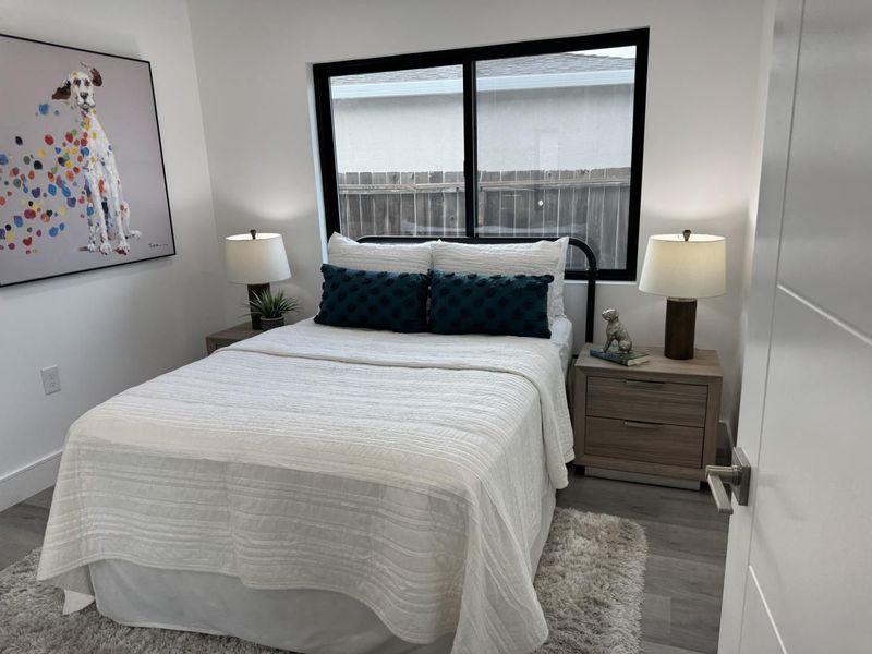 This completely reimagined 3-bedroom, 3-bathroom home has been remodeled down-to-the-studs which expanded by 650 permitted SF showcases a seamless blend of modern luxury and thoughtful design. Everything is new. High-end upgrades and designer finishes throughout, a truly turnkey and move-in ready. At the heart of the home is a chef's kitchen that boasts vaulted ceilings and multiple skylights, flooding the space with natural light. A massive center island anchors the kitchen, which is outfitted with top-of-the-line Thermador appliances, including a built-in refrigerator, commercial-grade 6-burners gas range, microwave, and dedicated wine and beverage fridges perfect for entertaining or everyday gourmet cooking. A dramatic 16-foot, 4-panel folding patio door that opens completely to the spacious backyard, creating the ideal setting for indoor-outdoor living and entertaining. Sleek, flat Venetian-style wall finishes, all-new modern bathrooms, a new HVAC system, inside laundry area. The home also features a brand-new roof, smooth stucco exterior, Milgard windows, and fully insulated walls. A whole-house water softener and tank less water heater. An upgraded 200-amp electrical panel and 2 EV chargers in the garage. Stylish, functional, and perfectly located in a peaceful cul-de-sac.