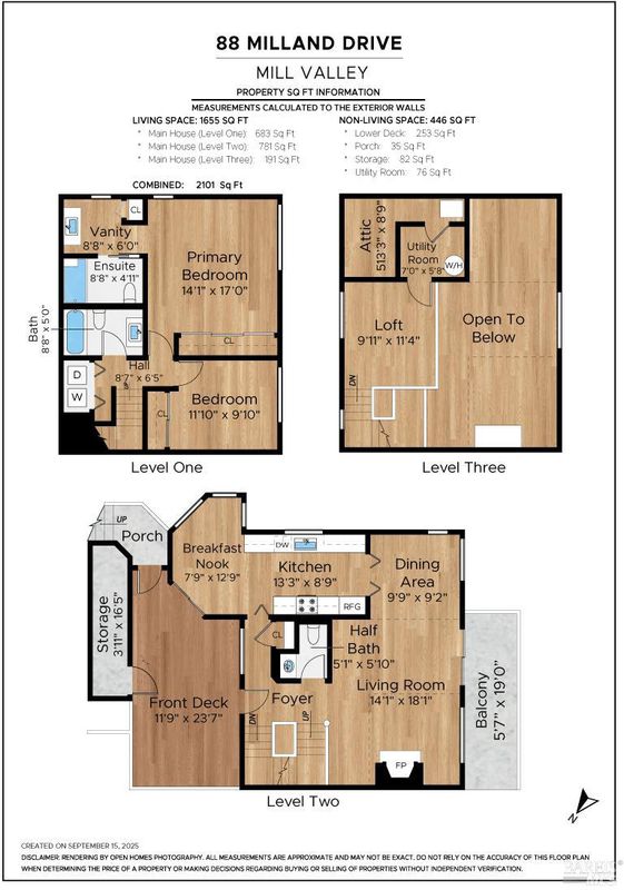 Located in Mill Valley's coveted Strawberry Hills neighborhood, this stylish 2-bedroom, 2.5-bathroom home offers soaring ceilings, abundant natural light, and stunning views of Richardson Bay. The main level features an open living and dining area with seamless indoor-outdoor access, an expansive eat-in kitchen, and a central powder room. The lower level includes a spacious primary suite with updated bath, a second bedroom with full bathroom, and a laundry room, all recently refreshed with new flooring and modern finishes. A versatile upper-level loft makes the perfect office, den, or hobby room, while multiple decks invite relaxation and entertaining with picturesque bay views. Additional highlights include a two-car garage and extra guest parking. With easy access to Highway 101, shopping, and scenic trails, this home blends comfort, style, and convenience in one exceptional Mill Valley setting.