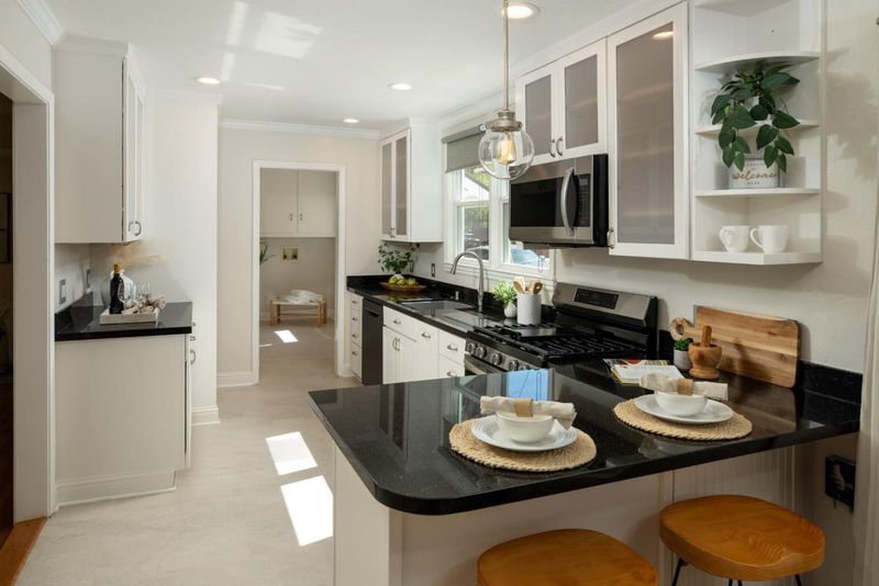 Charming 2BD/1BA home on a sunny corner lot in the heart of Redwood City. Surrounded by mature trees and lush landscaping, this light-filled gem features hardwood floors, a welcoming covered front porch, and a flowing floorplan. The spacious living room boasts large windows and abundant natural light. Enjoy cooking in the updated kitchen with granite countertops, glass-front cabinets, stainless steel appliancesincluding a gas range, Bosch dishwasher, and built-in microwave. A generous laundry room adds bonus storage and a convenient side entrance from the garage. Bedrooms and bath are tucked away on a private hallway, offering quiet retreat. Ideally located near Woodside Rd with easy access to 280, 101, and El Camino Real. Close to schools, shopping, dining, and the Magical Playground at Red Morton Park. A timeless, move-in-ready home in an unbeatable location!