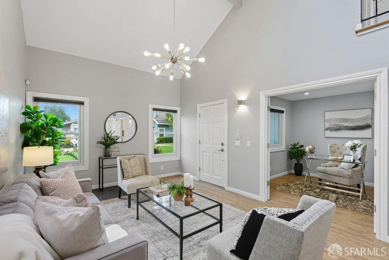 Stylish remodeled Foster City townhome with 3BR/2.5BA and private 2-car garage. Features dramatic ceilings, skylights, chef’s kitchen, patio with pergola, and greenbelt views. Quiet location near community pool, parks, trails, and easy freeway access.