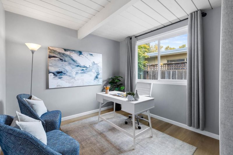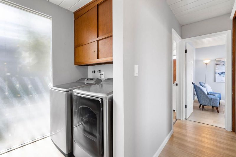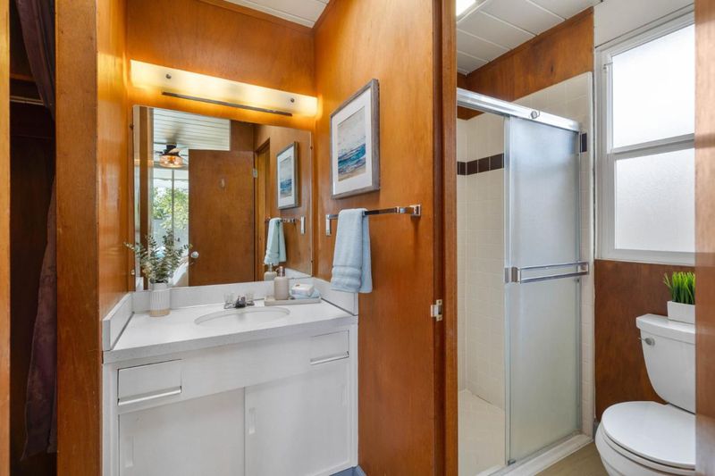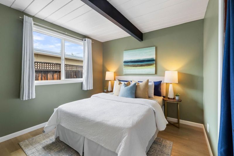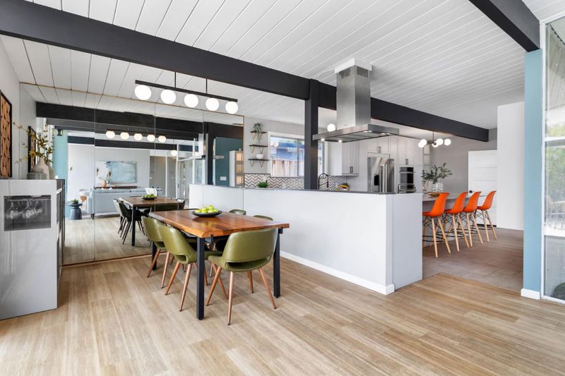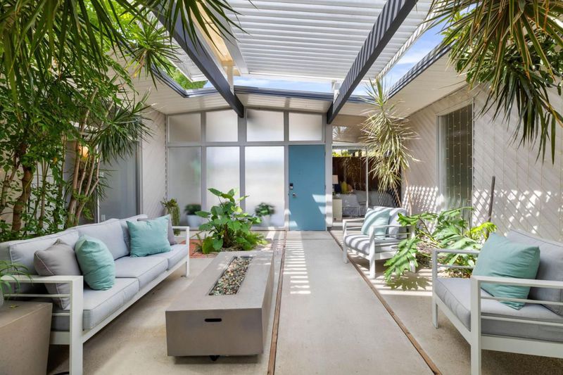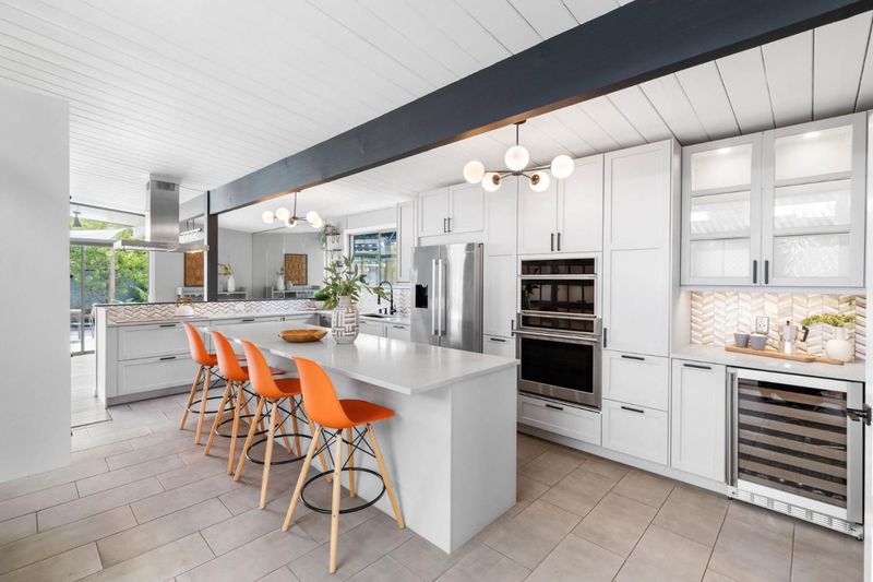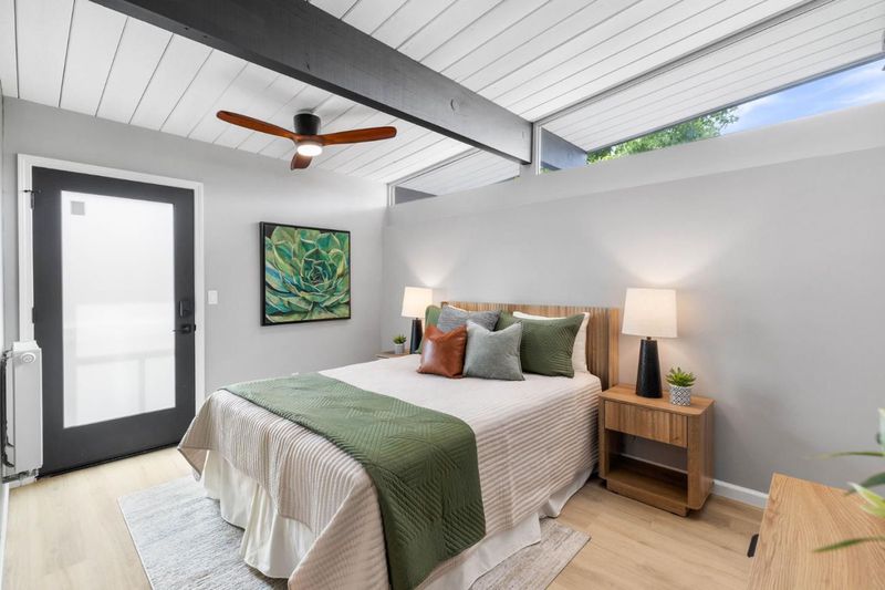 Gorgeous home designed by Joseph Eichler in Historic Fairglen Neighborhood where Mid-century modern meets today's luxury in this beautifully updated 5BR/3BA home. This home features a fully remodeled kitchen with high end/wi-fi enabled smart appliances, Miele hood & dishwasher, Bosch fridge, GE Monogram induction cooktop & oven with air-fry, built-in microwave, quartz countertops, custom cabinetry, and tile backsplash that echoes Eichler's signature aesthetic. Smart home features abound, including smart switches, GE Whole House Water with water consumption, vacation, & everyday leak sensor through an app, smart lighting, & more. Energy efficient upgrades include owned Tesla Solar & Battery system, 220V EV charger, a three-zone control Viessmann radiant heating system for optimal comfort and efficiency. A newly added 5th bedroom with ensuite bath & private entrance offers flexible living options. Enjoy designer bathrooms with the primary ready for your personal touch, organized custom closets, upgraded electrical panel, and beautifully drought tolerate landscaped front & backyard. All while staying true to the classic Eichler aesthetic atrium entry with unique louvred roof, original mahogany paneling, globe lighting, and iconic open-concept living with abundance of natural light.