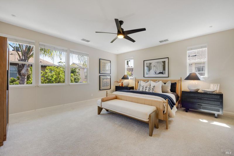 Set just one house down from Southgate Park, this wonderful home offers the kind of space and ease that makes everyday life feel a little more intentional, with a thoughtful layout that gives you room to spread out without sacrificing warmth. The island kitchen is built for convenience, with granite countertops, generous prep space, and a setup that welcomes both weeknight dinners and weekend gatherings. High ceilings and tall windows let in lots of natural light. Air conditioning and owned solar keep things comfortable year-round. The primary suite spans the full width of the upper level, offering a sense of quiet, removed from the rest of the home. The ensuite features separate vanities and two walk-in closets with expansive storage. A second ensuite downstairs provides flexibility for guests, extended family, or a private home office. The generous upstairs loft is ready for conversion to a fifth bedroom if needed. The backyard is secluded and polished. Soak in the hot tub after a hectic day, or open the space up for the kind of entertaining that flows naturally. A third tandem garage bay/workshop adds flexible space for hobbies and more. Situated just a short drive from downtown, with easy access to 101, shopping, restaurants, and schools, the family-friendly Southgate neighborhood hosts year-round events, such as an Egg Hunt, a 4th of July bike parade, and is well-known as a fantastic Trick-or-Treating neighborhood. This is a home that lives as well as it shows.