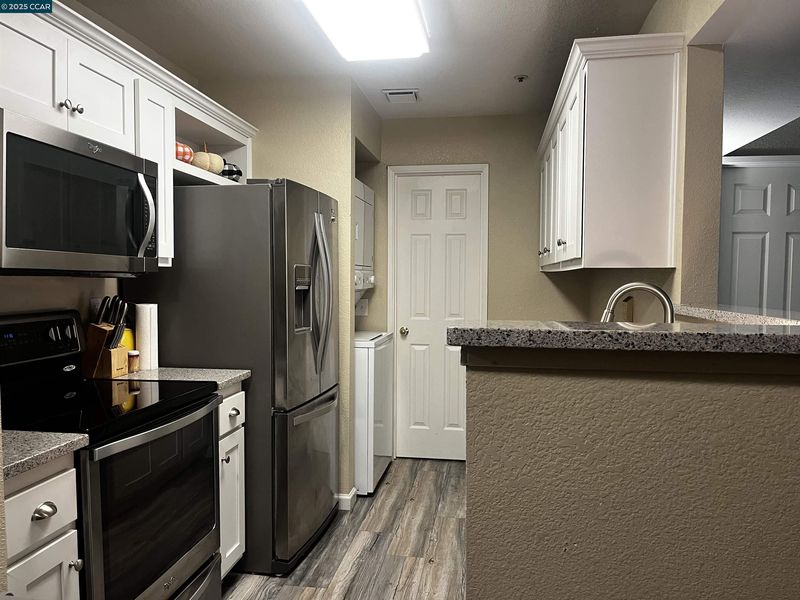 - Dishwasher, Electric Range, Microwave, Refrigerator, Dryer, Washer, Gas Water Heater, Stone Counters, Electric Range/Cooktop, Disposal