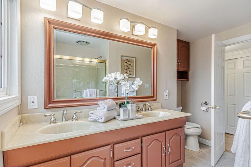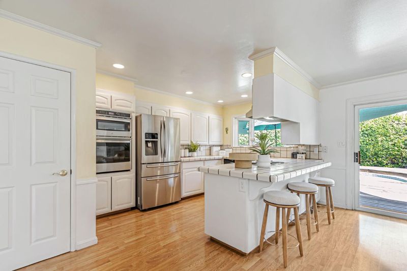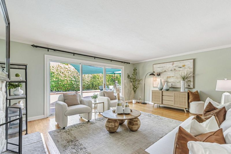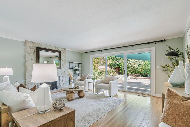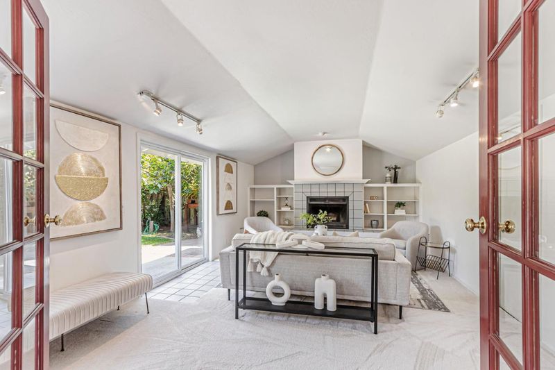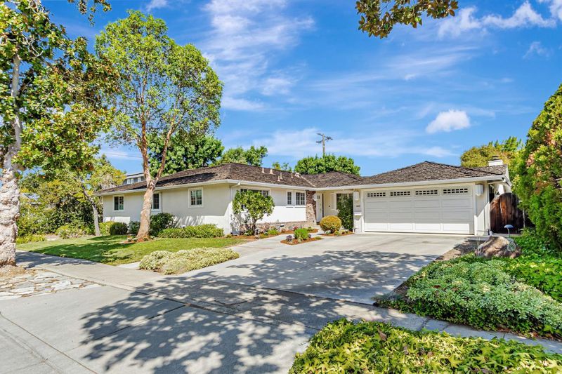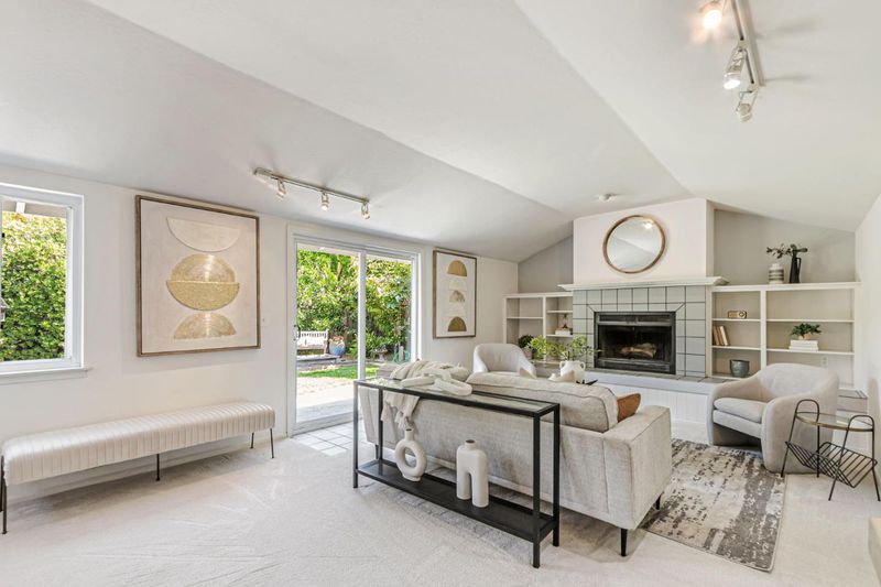 This charming single-story home is located in one of Sunnyvales most desirable neighborhoods, bordering Los Altos and Cupertino, with top-rated schools: West Valley Elementary, Cupertino Middle, and Homestead High. A brick-lined walkway leads to a cozy front porch, perfect for relaxing with a glass of wine and enjoying the sunset. The open-concept living space centers around the kitchen, dining, and family room. The family room features a floor-to-ceiling brick fireplace, bookshelves, and large windows that flood the space with natural light. Glass French doors offer a private retreat for study or relaxation. The oversized formal living room showcases a stunning stone fireplace and original hardwood floors. Sliding glass doors lead to a private backyard sanctuary with a pool, spa, and mature landscaping. Newer fencing surrounds the yard. With 2,177 sq. ft., 4 bedrooms, and 3 bathrooms, this home sits on a 9,630 sq. ft. lot. Conveniently located near Apple (3.3 miles), Stanford, Santa Clara University, and major highways, it offers easy access to shopping, dining, and outdoor activities. Ideal for Silicon Valley living!