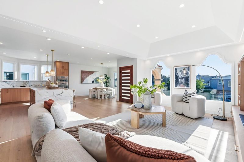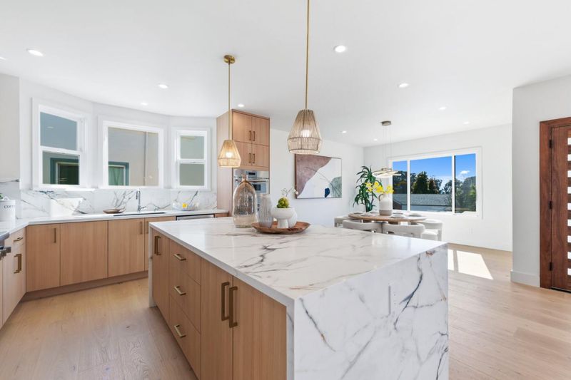 Extensively rebuilt from the studs w/ a refined modern vision, this beautifully reimagined Merced Manor home blends timeless architecture w/ elevated living. Offering 4BD 4.5BA, an open layout, and a 2-car garage, every detail has been thoughtfully executed. Designed w/ high-end finishes throughout, the home features wide-plank flooring, recessed lighting, and clean architectural lines. The chefs kitchen anchors the space w/ custom cabinetry, premium built-in appliances, a 6-burner gas range, and a striking waterfall island, seamlessly connecting to the living and dining areas and extending to a generous outdoor setting for indoor-outdoor living. The expansive living area is enhanced by custom built-ins and designer lighting, creating a refined yet inviting atmosphere. Each bedroom is well-sized for comfort and privacy, while all bathrooms are fully upgraded with spa-inspired finishes, floating vanities, and elegant stonework. The primary suite offers a tranquil retreat w/ a soaking tub, walk-in shower, and a calming modern aesthetic. Comprehensively upgraded w/ new electrical, roof, Milgard windows, and a three-coat stucco exterior, plus a newly finished yard, pavement, and fencing. Ideally located near Stonestown Galleria, Lake Merced, parks, dining, & major commute routes.