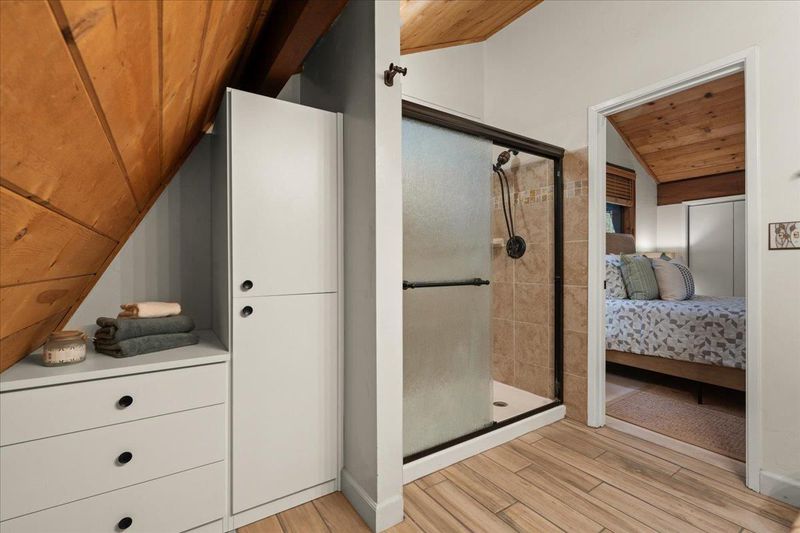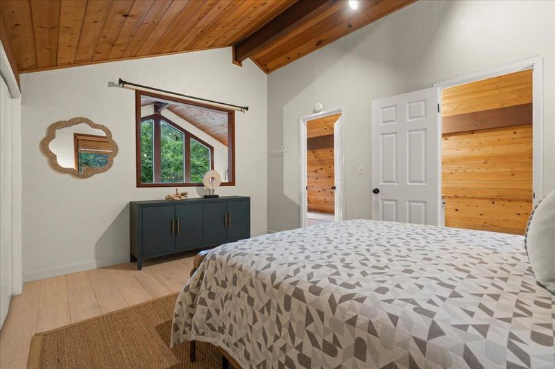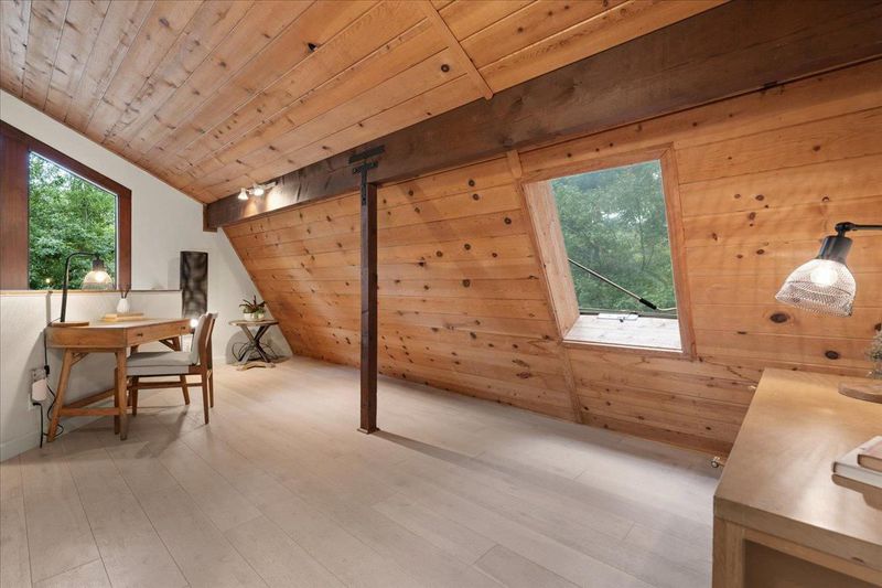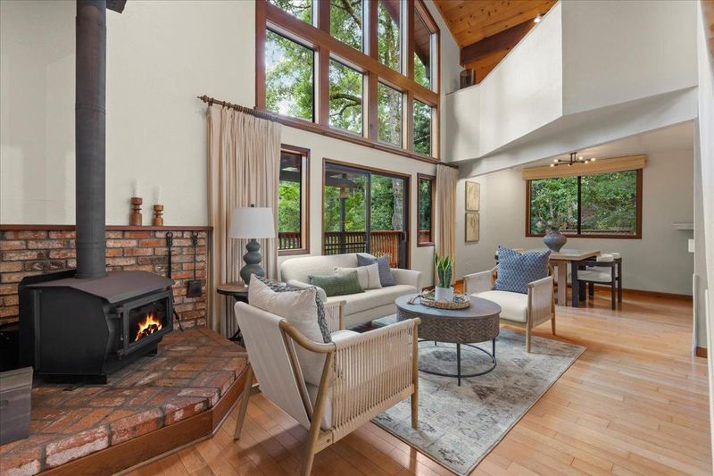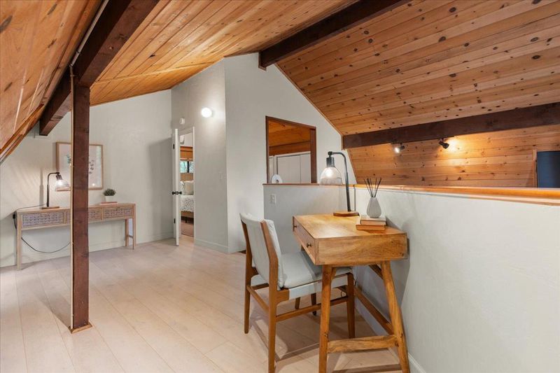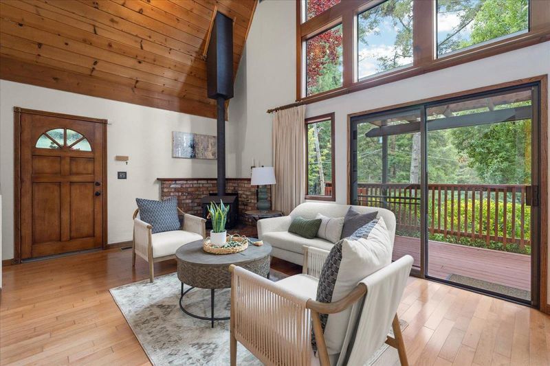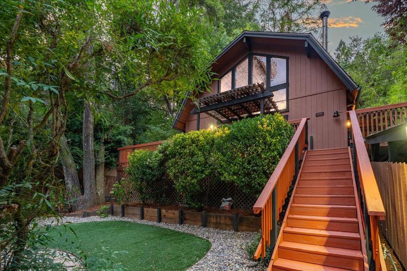 Tired of the same old boring houses? Want something different? Welcome to 544 Gold Ave., an architecturally interesting A-Frame in an idyllic Felton location. Nestled among mature trees and flooded with natural light is this 2BR/2BA charmer with 1,247 square feet and tons of usable outdoor space. Enter into the double-height ceiling living room with a wood burning stove and a wall of windows, and experience the ultimate flow with a dining room off the open concept kitchen. With one bathroom downstairs (along with the laundry room) and the primary suite and a versatile loft space upstairs--think gym, office, or both!--this home has that "it" factor that is so often lacking with ordinary home. Don't settle for ordinary when you could have 544 Gold Ave., an extraordinary home in the hills mere minutes away from downtown Felton shops and restaurants, the Farmer's Market, Henry Cowell State Park, and much more.
