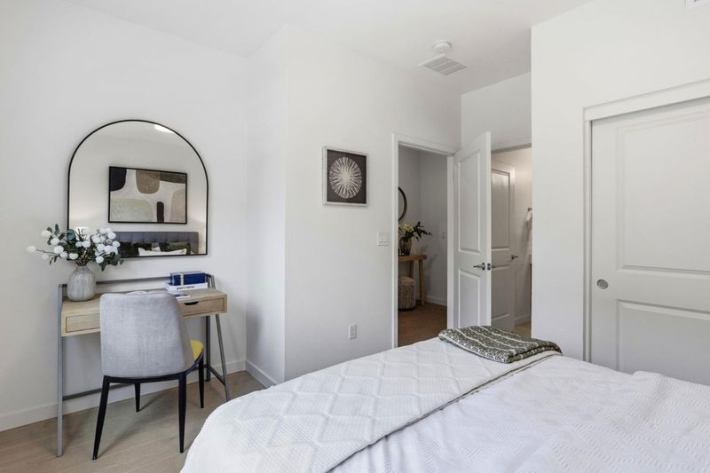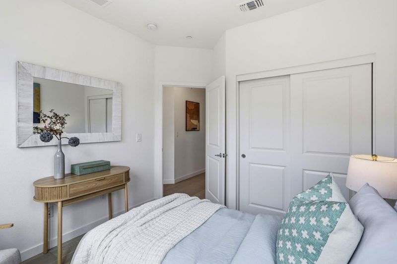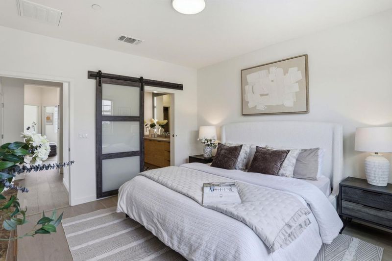 Stunning, private, corner home in a premium community location in MV. Balconies and bedroom windows overlook open views with no direct front neighbors, offering exceptional privacy. This spacious, remodeled end-unit townhouse, built in 2018, features 1,904 sq ft with 4BR/3.5BA. Light-filled open floor plan with high ceilings, engineered hardwood flooring, and recessed lighting throughout. The gourmet kitchen includes abundant cabinetry, caesar stone countertops, a large center island with breakfast bar, and premium appliances, including a Wolf cooktop and Liebherr refrigerator. The first-floor bedroom and full bath are ideal for guests or a home office. Upstairs offers three additional bedrooms, including a luxurious primary suite with a walk-in closet and modern bath with dual sinks and quality finishes. Laundry is conveniently located upstairs. Additional features include dual-zone HVAC, two balconies, and an attached 2-car garage. Just a short walk to Pyramid Park, VTA station, and minutes to Caltrain, major highways 237/101/85, downtown Mountain View, Shoreline Amphitheatre, and leading tech campuses. A rare blend of luxury, convenience, and privacy. A must see!