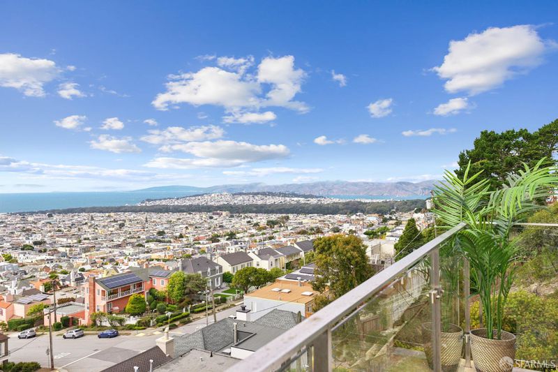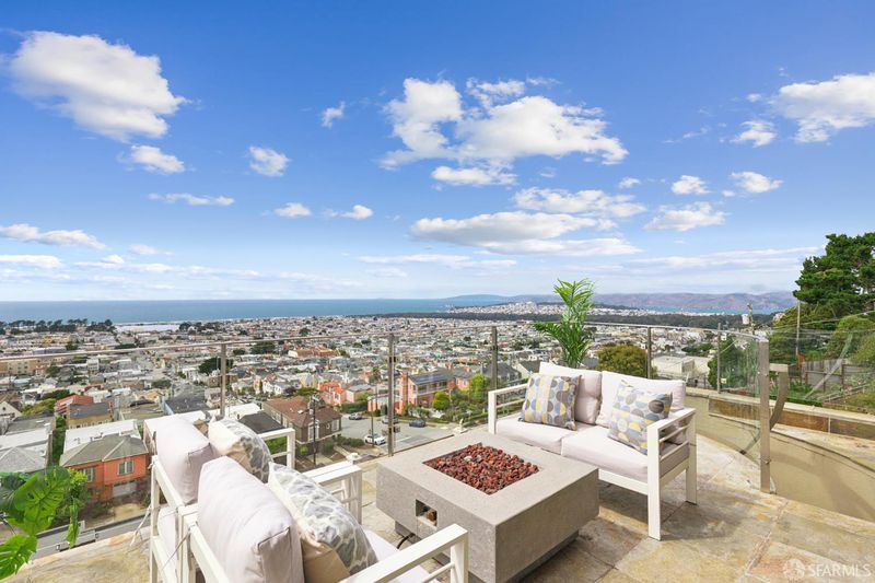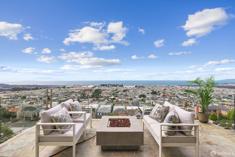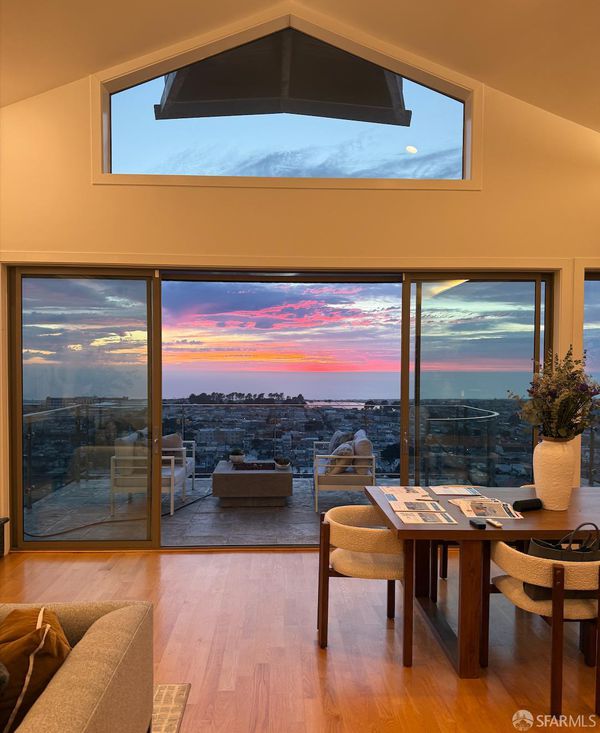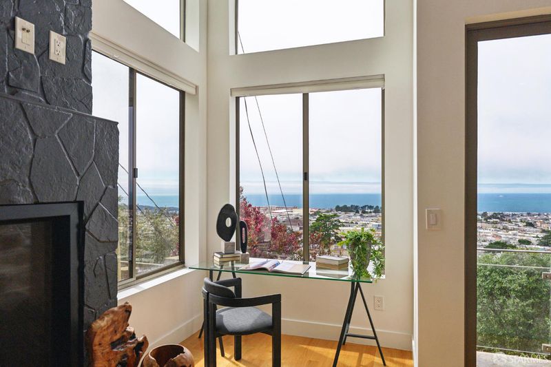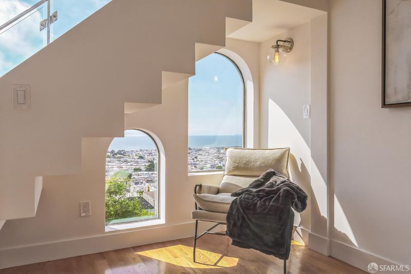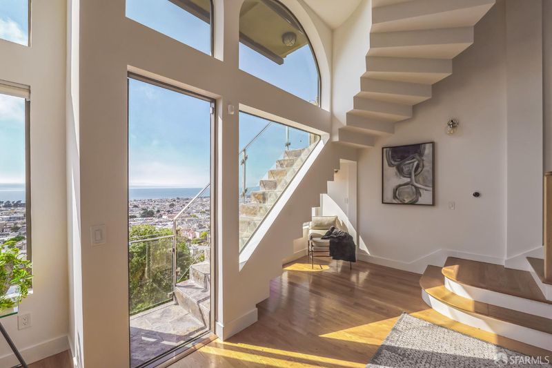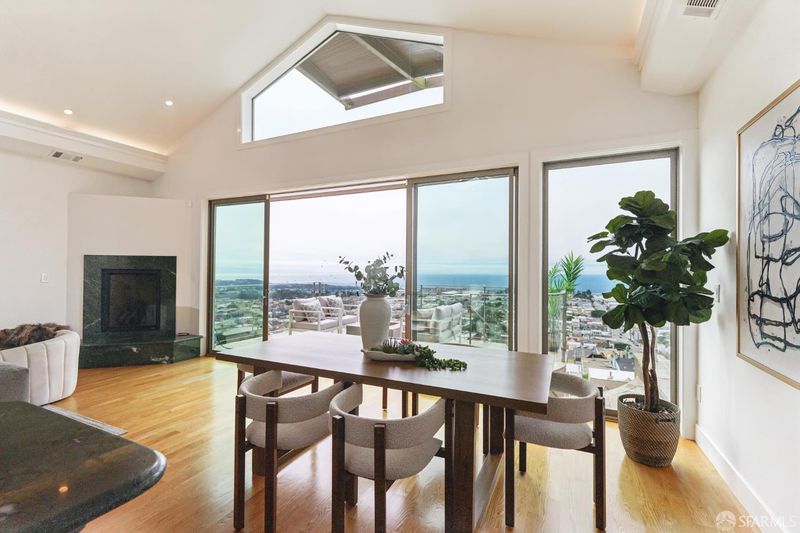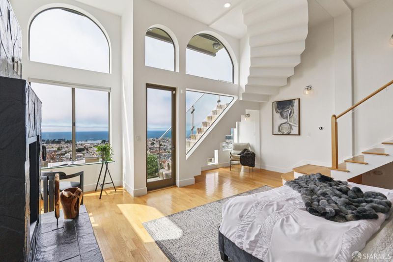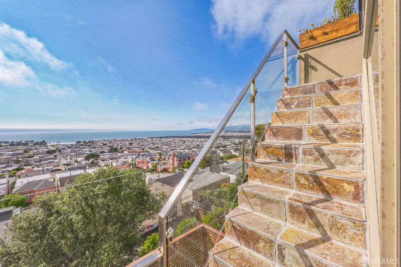 From the moment you arrive, you'll feel the elegance and beauty of this Golden Gate Heights stunner. Cook in your gourmet kitchen, host friends in style, or relax with family all while soaking in sweeping, ocean views. The living and dining rooms flow effortlessly onto an expansive terrace where the sky meets the sea. Bathed in natural light from five skylights, the open floor plan balances comfort and sophistication with vaulted ceilings, cozy fireplaces, and walls of glass that frame breathtaking sunsets. Two bedrooms and a full bath are conveniently located on the main level, offering comfort and flexibility for family or guests. Downstairs, the primary suite is your private retreat: floor-to-ceiling windows overlooking the horizon, a spacious walk-in closet, an office nook, and a spa-like primary bathroom suite. The home's original circular staircase ties it all together, leading to two levels of modern living with a spacious garage (interior access included), separate laundry room, ample storage, and an easy-maintenance backyard. The house was gutted to the studs in 2005; it's updated and modern. All this, just a block from Golden Gate Heights Park and the #6 Muni line with West Portal shops and transit moments away.