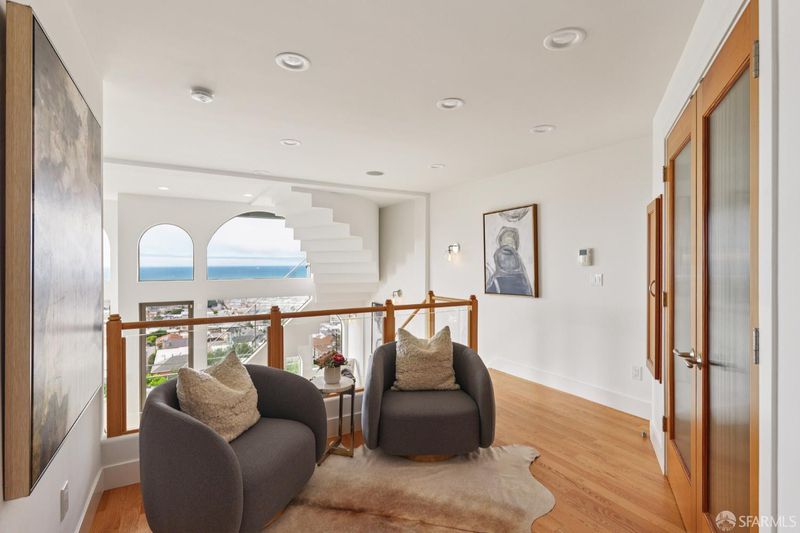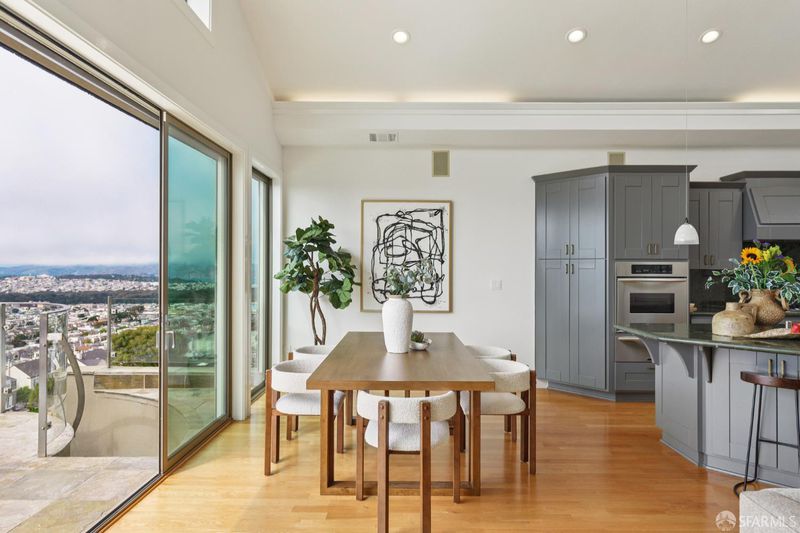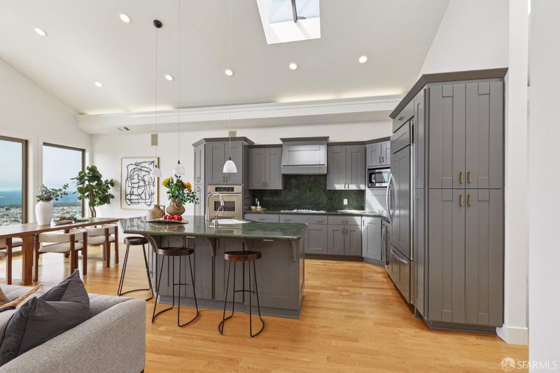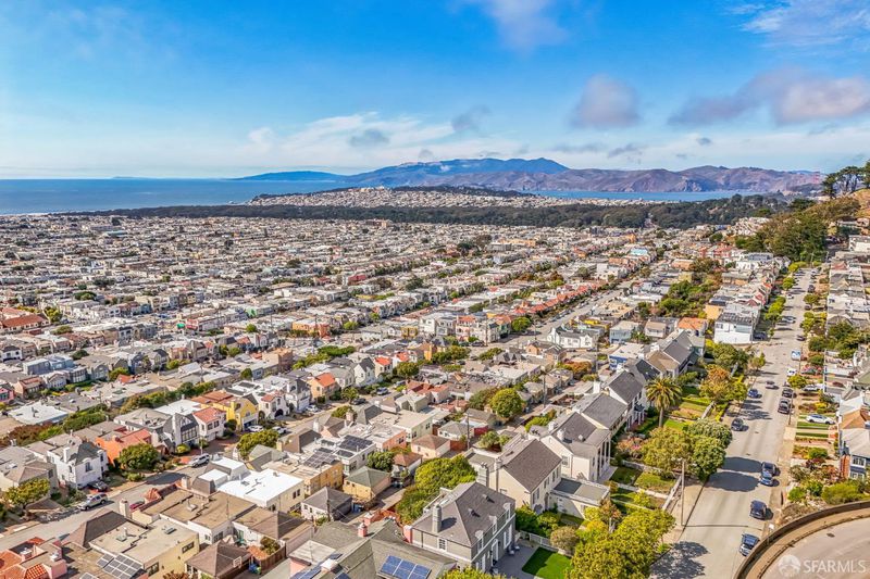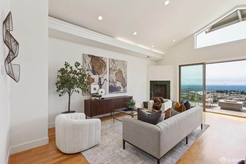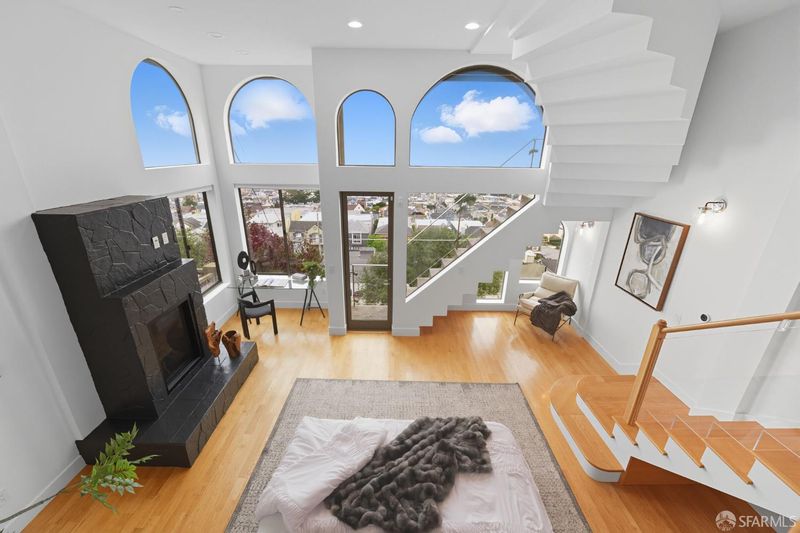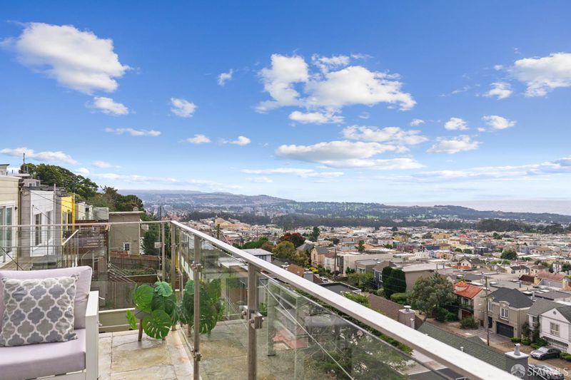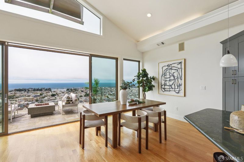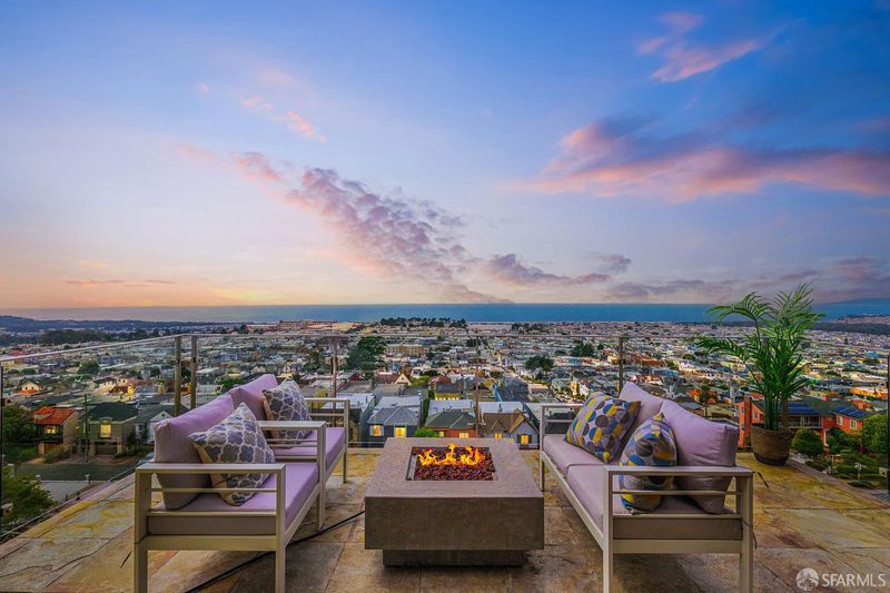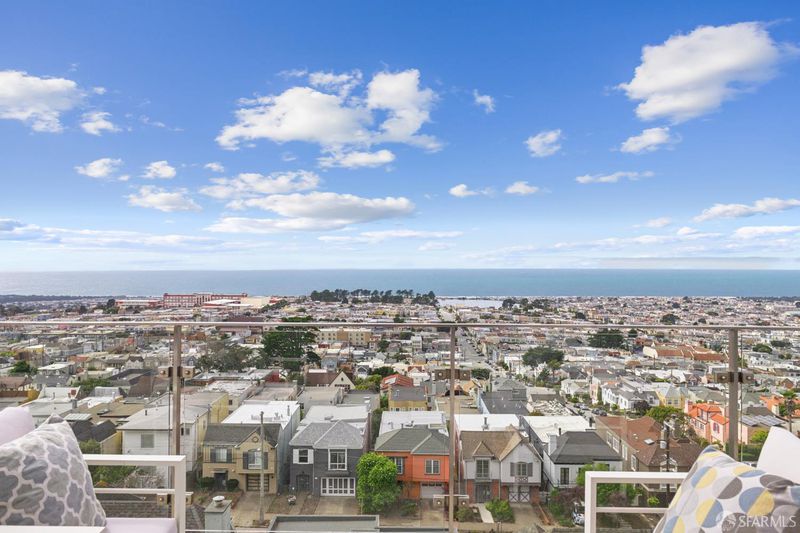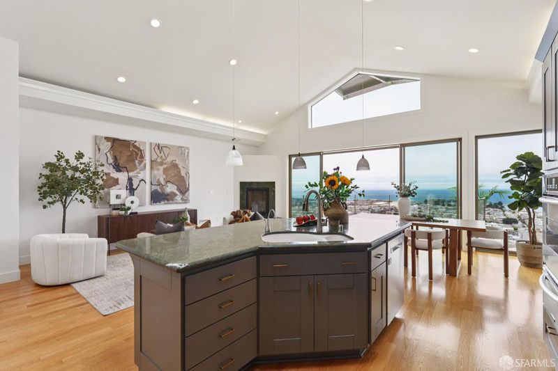 From the moment you arrive, you'll feel the elegance and beauty of this Golden Gate Heights stunner. Cook in your gourmet kitchen, host friends in style, or relax with family all while soaking in sweeping, ocean views. The living and dining rooms flow effortlessly onto an expansive terrace where the sky meets the sea. Bathed in natural light from five skylights, the open floor plan balances comfort and sophistication with vaulted ceilings, cozy fireplaces, and walls of glass that frame breathtaking sunsets. Two bedrooms and a full bath are conveniently located on the main level, offering comfort and flexibility for family or guests. Downstairs, the primary suite is your private retreat: floor-to-ceiling windows overlooking the horizon, a spacious walk-in closet, an office nook, and a spa-like primary bathroom suite. The home's original circular staircase ties it all together, leading to two levels of modern living with a spacious garage (interior access included), separate laundry room, ample storage, and an easy-maintenance backyard. The house was gutted to the studs in 2005; it's updated and modern. All this, just a block from Golden Gate Heights Park and the #6 Muni line with West Portal shops and transit moments away.