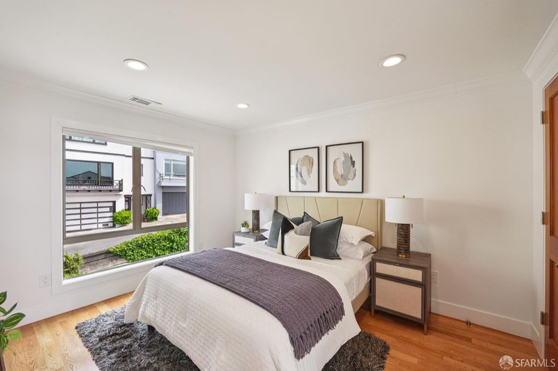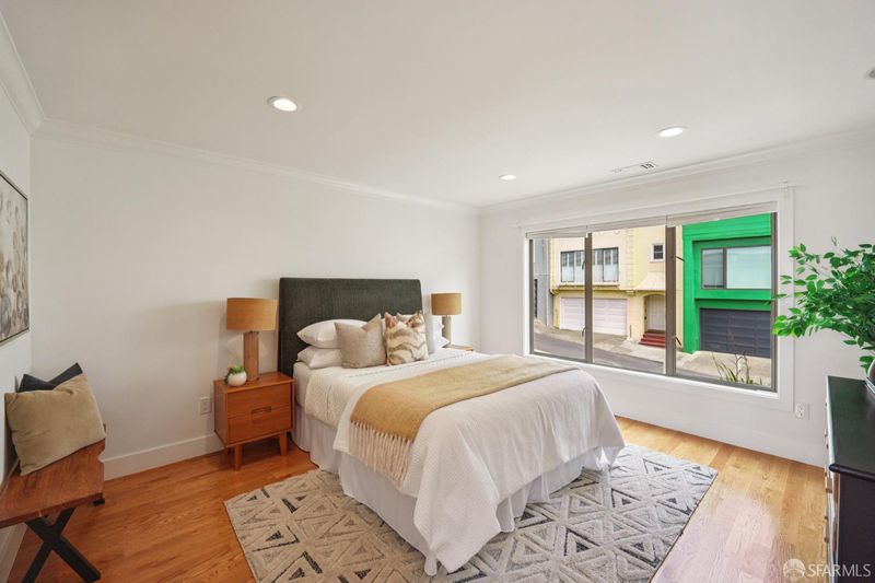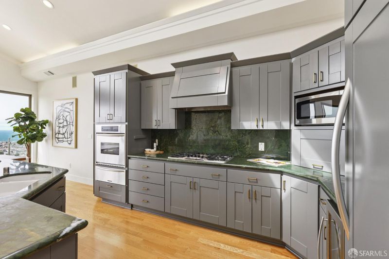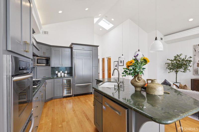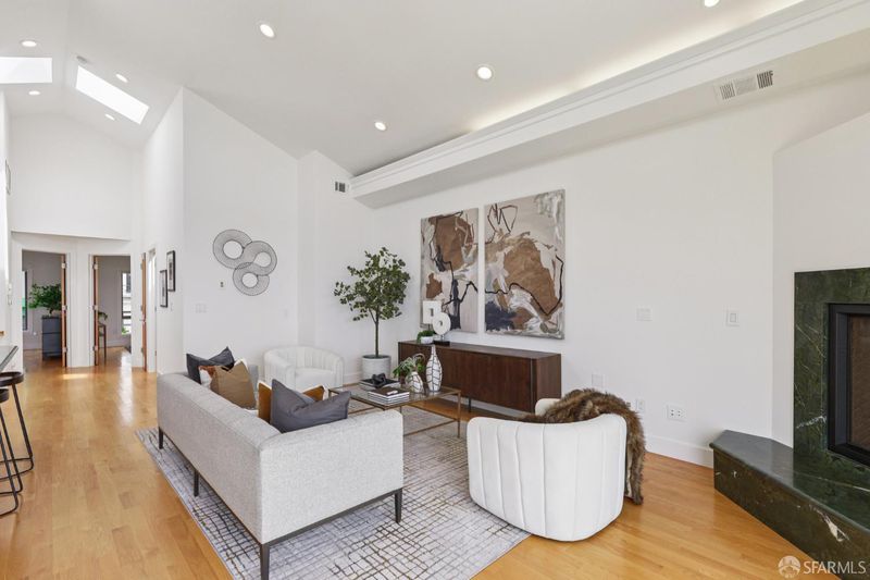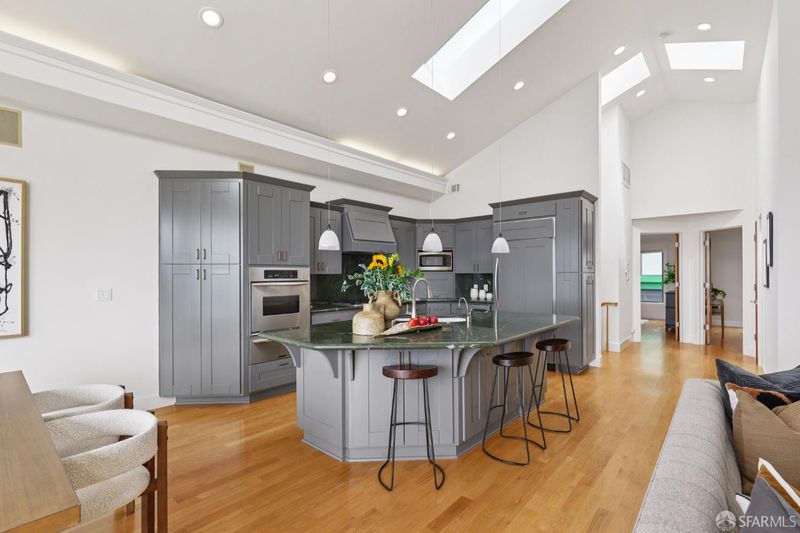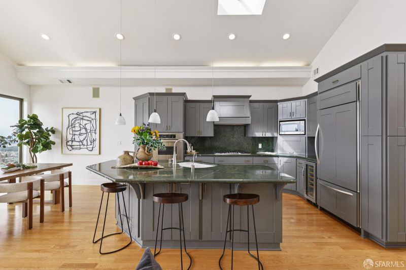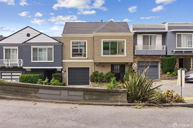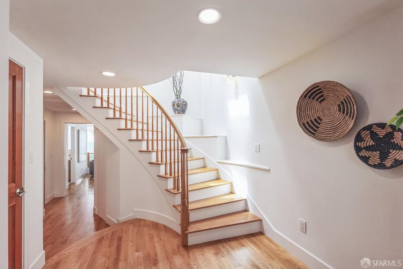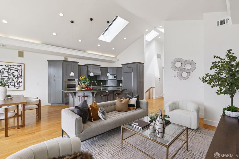 From the moment you arrive, you'll feel the elegance and beauty of this Golden Gate Heights stunner. Cook in your gourmet kitchen, host friends in style, or relax with family all while soaking in sweeping, ocean views. The living and dining rooms flow effortlessly onto an expansive terrace where the sky meets the sea. Bathed in natural light from five skylights, the open floor plan balances comfort and sophistication with vaulted ceilings, cozy fireplaces, and walls of glass that frame breathtaking sunsets. Two bedrooms and a full bath are conveniently located on the main level, offering comfort and flexibility for family or guests. Downstairs, the primary suite is your private retreat: floor-to-ceiling windows overlooking the horizon, a spacious walk-in closet, an office nook, and a spa-like primary bathroom suite. The home's original circular staircase ties it all together, leading to two levels of modern living with a spacious garage (interior access included), separate laundry room, ample storage, and an easy-maintenance backyard. The house was gutted to the studs in 2005; it's updated and modern. All this, just a block from Golden Gate Heights Park and the #6 Muni line with West Portal shops and transit moments away.