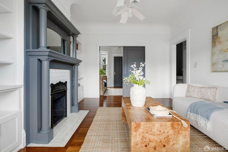 A refined expression of Presidio Heights character, this beautifully updated full-floor Victorian condo offers 3 bedrooms, 2 full bathrooms, and a newly added powder room. Rich period detail including original wood floors, moldings, stamped wall panels, fireplaces, and leaded-glass built-ins preserves the home's architectural soul, while thoughtful renovations bring modern comfort and polish. At the front of the home, a gracious living room with fireplace sits alongside two bedrooms, including one with curved-glass bay windows and leafy treetop outlooks. The third bedroom offers exceptional flexibility as an office, media room, library, or guest space. A fully renovated hall bath and stylish powder room serve this portion of the home. Toward the rear, a formal dining room with original leaded-glass cabinetry, fireplace, and decorative molding opens to a fully renovated chef's kitchen with custom cabinetry and slab counters. Beyond, the generous primary suite overlooks the shared garden and captures iconic Sutro Tower views, with a walk-in closet, fully renovated ensuite bath, and abundant southern light. Additional highlights include a dedicated laundry room and large deeded storage. Ideally located moments from Sacramento Street, Laurel Village, and the Presidio, this home pairs classic San Francisco architecture with the ease of a sophisticated modern renovation.