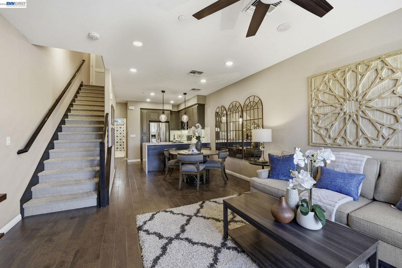 Welcome to 4119 Peralta Blvd in Fremont’s desirable Renato community by Pulte Homes. Originally purchased as a model home, this beautifully upgraded 3BD/3BA townhome offers approximately 1,652 sq. ft. of stylish modern living across three levels with a 2-car garage. The flexible lower-level loft makes an ideal home office and features lovely French doors opening to a private front patio, adding both charm and functionality. The bright open-concept main living area is perfect for everyday living and entertaining, while the kitchen showcases quartz countertops, a waterfall island, upgraded backsplash, stainless steel appliances, and contemporary finishes. Additional highlights include paid solar, a 220V EV charging outlet, upgraded flooring, upgraded lighting, under-cabinet lighting, an upgraded stair rail, and designer model-home touches throughout. Conveniently located near I-880, Hwy 84, BART, Centerville Station, shopping, dining, and top-rated schools, this move-in-ready home offers the perfect blend of style, comfort, and convenience in a prime Fremont location.