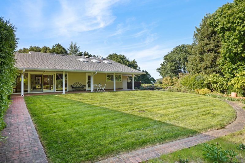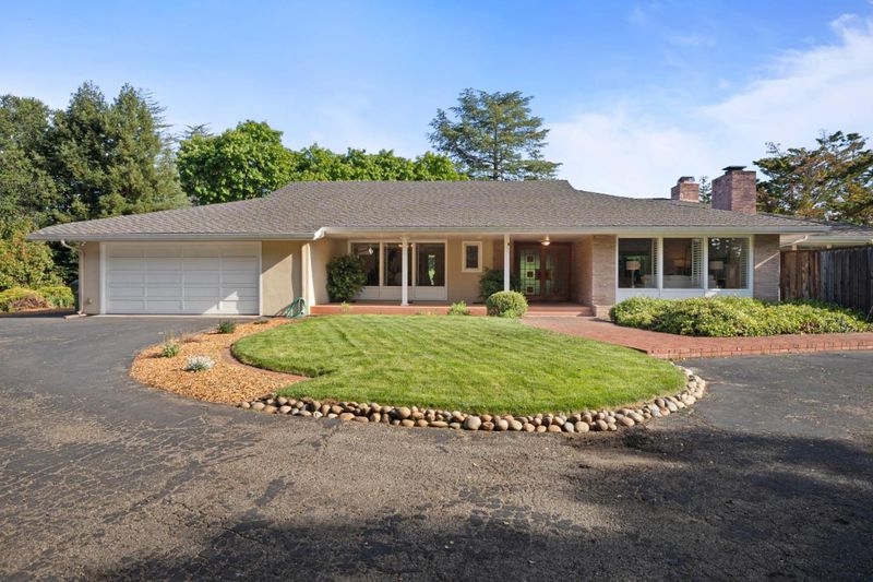 This is the forever home everyone hopes for! Exceptionally quiet and private, this gated single-level ranch home spans approximately 3,000 sq ft on over one acre of rare, level land in a prestigious Woodside Hills cul-de-sac. Offering a unique combination of serenity and convenience, the property is just minutes from Highway 280 for easy commuting. A gated entry opens to an expansive front yard with ample parking and a spacious motor court. This lot is ready for a pool, lawn games or an ADU. The home features a well-designed floor plan highlighted by a grand-scale living room, a separate formal dining room, and a sun-filled kitchen with wraparound windows overlooking the backyard. The kitchen flows seamlessly into the family room, creating an open-concept great room ideal for everyday living and entertaining. The bedroom wing includes three generously sized bedrooms, each with its own connected bathroom, including a primary suite. The grounds are park-like, featuring a large, flat lawn, mature trees, and partial view-an uncommon offering in this area. An exceptional opportunity to enjoy a peaceful setting with easy access to commute routes and nearby amenities.