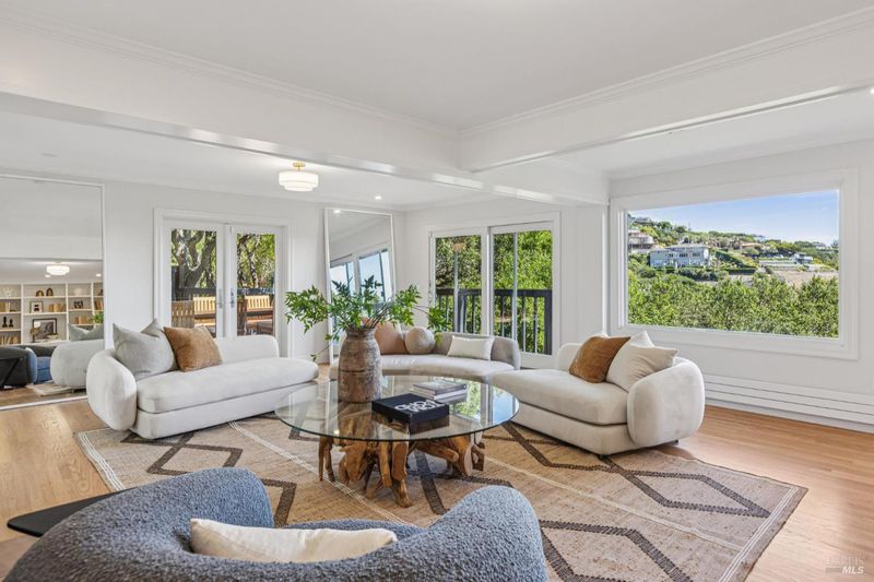 Sweeping views of downtown San Francisco, the Bay, and the Belvedere Lagoon fill nearly every room of this exceptional Tiburon home. Nestled in one of Marin's most prestigious enclaves, it offers both immediate livability and outstanding potential, surrounded by neighboring homes valued between $5M-$15M. The 3-bedroom, 2.5-bath floor plan includes a main level with a kitchen, dining, and living area that open seamlessly to a view deck. The spacious primary suite features a walk-in closet and ensuite bath, while a second bedroom and half bath complete the level. On the lower floor, an expansive family room with deck access provides incredible flexibility, alongside a large third bedroom with beautiful views and direct garage access. Outdoor living is equally compelling with multiple decks, landscaped gardens, a level lawn, and a tranquil waterfallideal spaces for both relaxation and entertaining. Set at the end of a quiet cul-de-sac, the property enjoys a rare microclimate protected from wind and fog. Just minutes from trails, ferries, top-rated schools, and downtown Tiburon, this residence offers turnkey comfort today with endless opportunity for future enhancement.