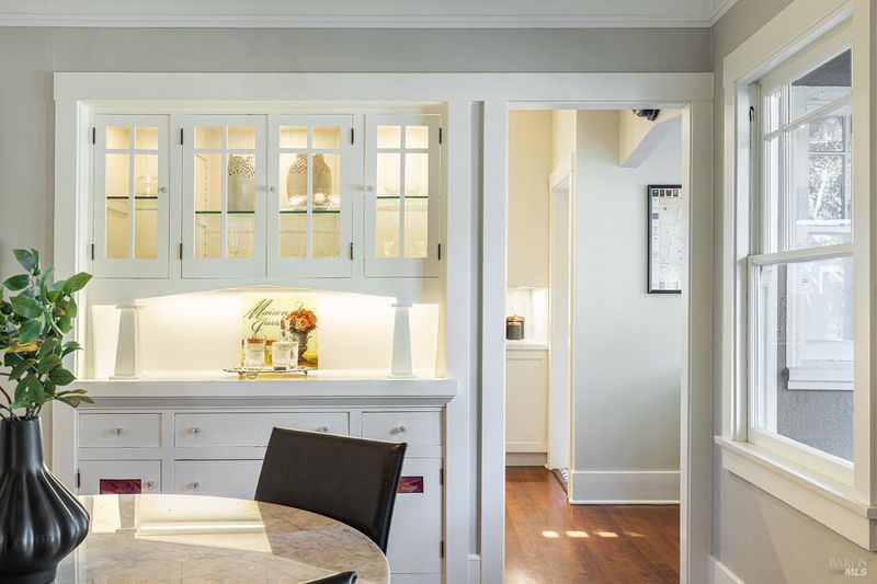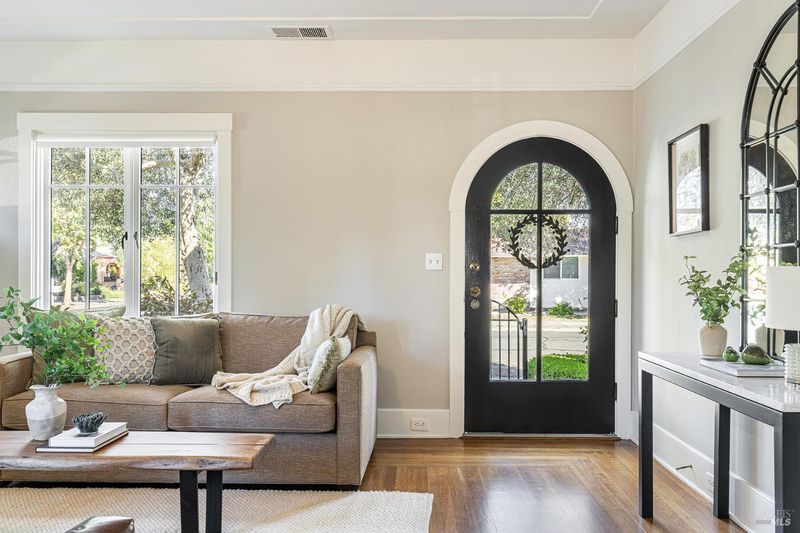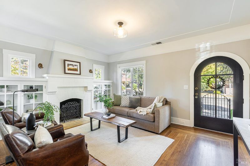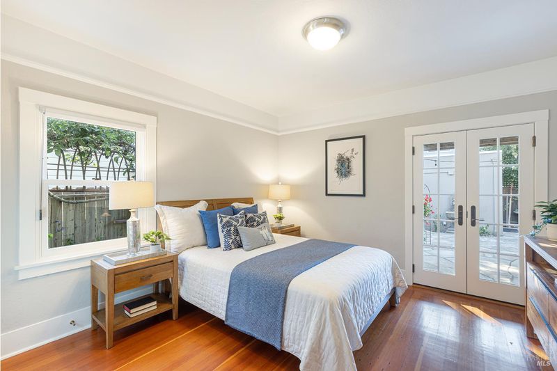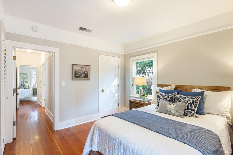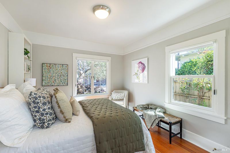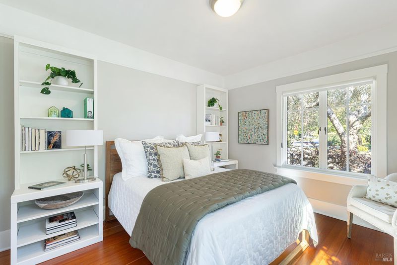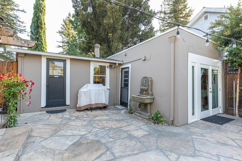 Charming single-level 1925 contemporary bungalow with ADU potential, thoughtfully updated to blend vintage character with modern style. Ideally located within walking distance to downtown Napa's wine tasting, dining, and shopping, this inviting home offers 2 spacious bedrooms plus a versatile detached building perfect for a home office, wine cellar, or artist studio. Classic details include hardwood floors, custom built-ins, crown molding, and recessed ceilings, all adding warmth and sophistication. French doors open to a beautifully landscaped backyard designed for entertaining, with a flagstone patio, pergola, outdoor shower, and fruit trees creating a private retreat. The detached garage provides excellent potential for an ADU conversion, offering future flexibility. Combining historic charm, smart updates, and an enviable downtown location, this home captures the essence of the Napa Valley lifestylewhether as a full-time residence, weekend getaway, or investment opportunity.