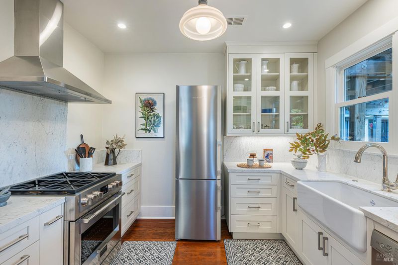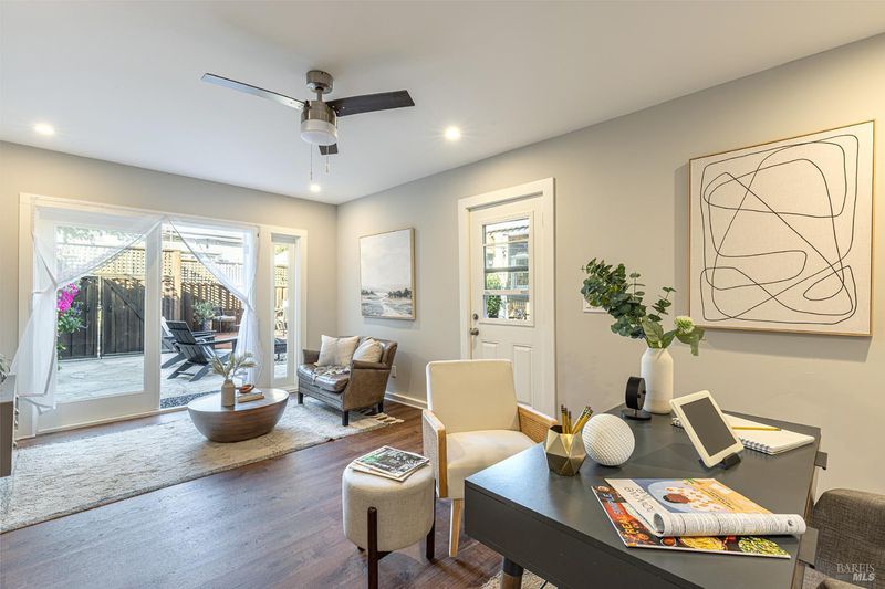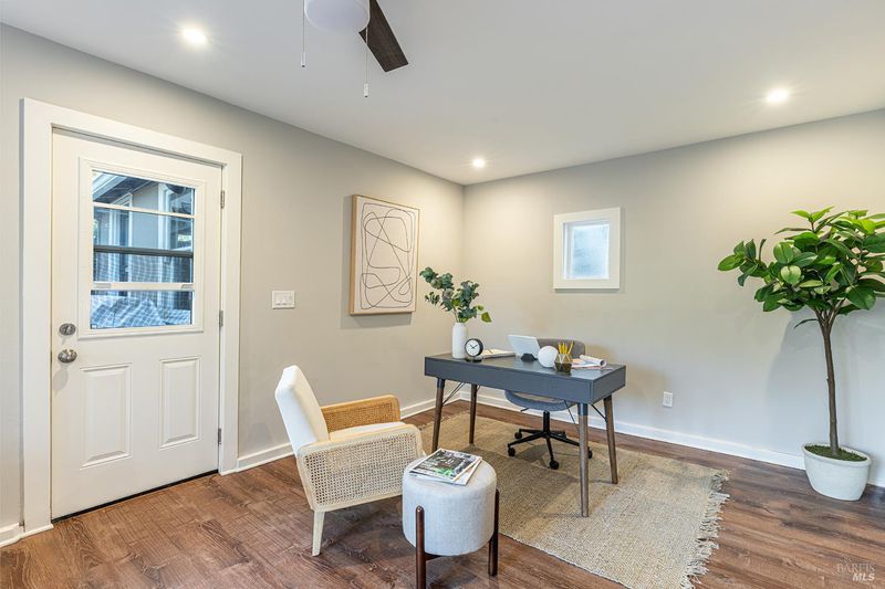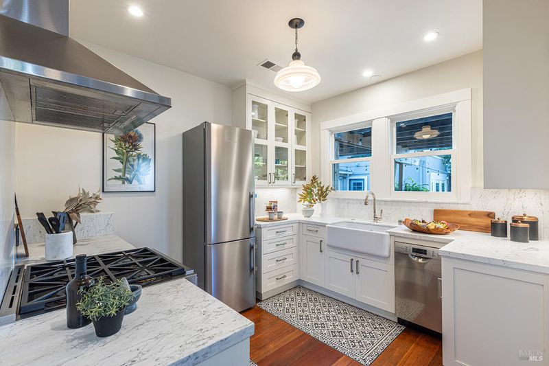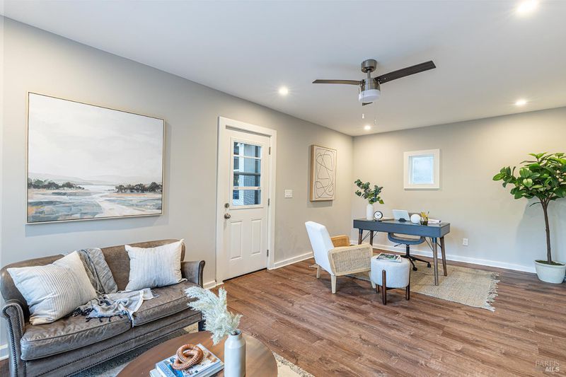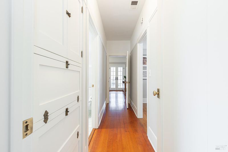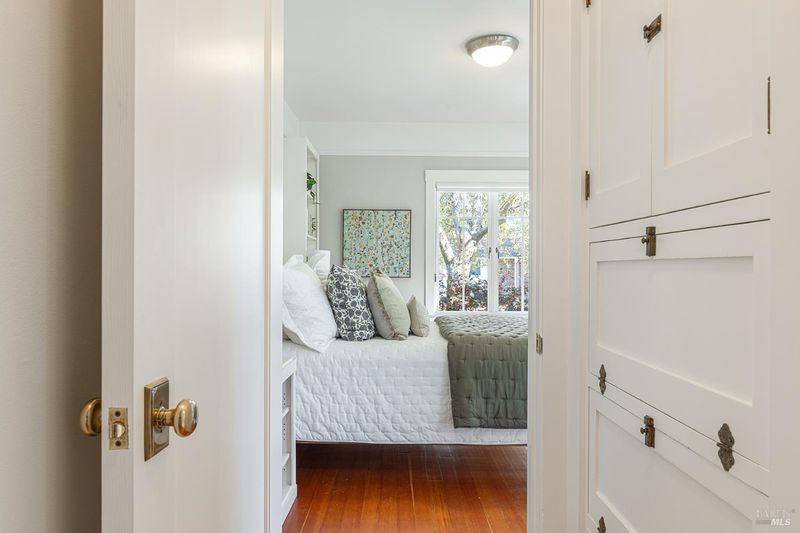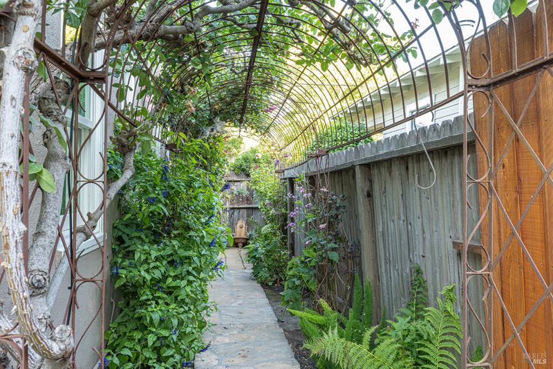 Charming single-level 1925 contemporary bungalow with ADU potential, thoughtfully updated to blend vintage character with modern style. Ideally located within walking distance to downtown Napa's wine tasting, dining, and shopping, this inviting home offers 2 spacious bedrooms plus a versatile detached building perfect for a home office, wine cellar, or artist studio. Classic details include hardwood floors, custom built-ins, crown molding, and recessed ceilings, all adding warmth and sophistication. French doors open to a beautifully landscaped backyard designed for entertaining, with a flagstone patio, pergola, outdoor shower, and fruit trees creating a private retreat. The detached garage provides excellent potential for an ADU conversion, offering future flexibility. Combining historic charm, smart updates, and an enviable downtown location, this home captures the essence of the Napa Valley lifestylewhether as a full-time residence, weekend getaway, or investment opportunity.