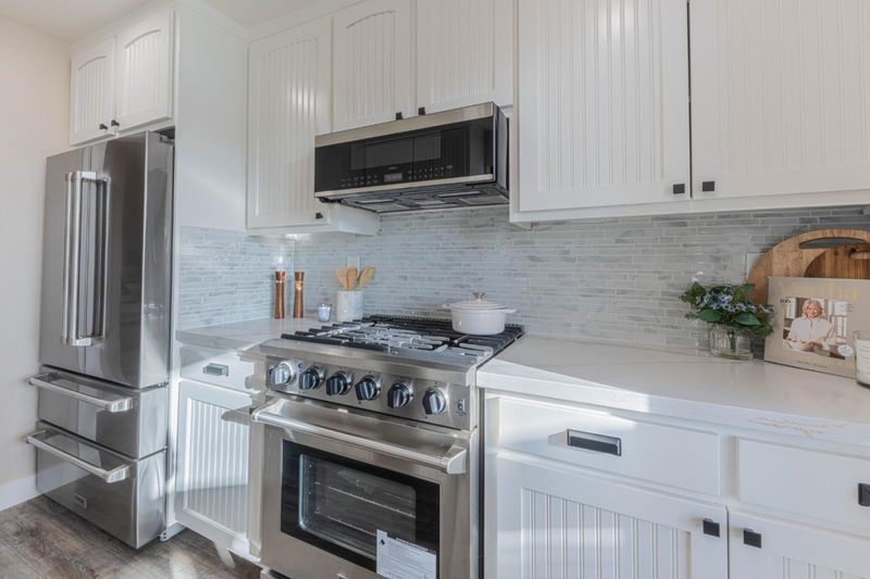 - Dishwasher, Microwave, Countertop - Quartz, Oven Range - Gas, Refrigerator, Oven - Electric