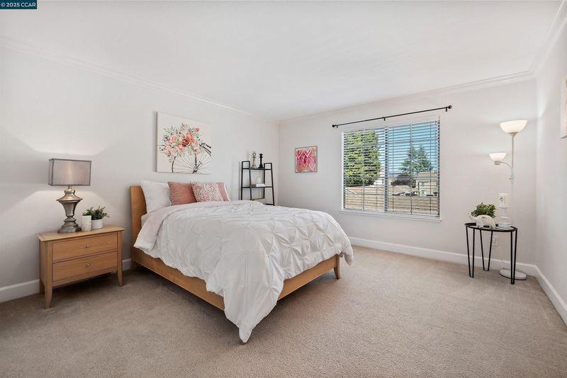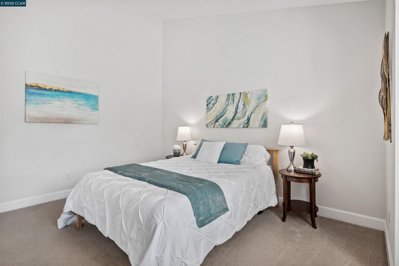 Beautifully maintained Eastridge upper-level condo at the top of San Ramon's Bollinger Canyon Rd. Gated community w/in a mile of City Center, year-round farmers market, The Marketplace shops, restaurants, Central Park, library, community ctr, Iron Horse Trail. 1074+/-SF. 2 bds w/en suite bathrooms, mirrored closet drs. 2 bathrooms w/single sink vanities, tub/shower combos. Inviting entry. Vaulted ceilings. Fresh int paint. Crown molding. Tile & carpeted floors. Updated central AC (2019). Abundant natural light. Living rm w/wood-burning fireplace, slider to view balcony & storage closet. Dining area, ceiling fan/light. Well-appointed kitchen w/granite counters, richly stained cabinetry, upper glass-faced cabinets, stainless steel refrigerator, new Samsung range, dishwasher & microwave. Front-facing window over stainless-steel sink. Washer/dryer behind closet drs. Multiple storage closets. Updated central AC (2019). Updated exterior. Exclusive enclave of condos on park-like grounds. Towering redwoods. Walking trails. App-controlled security gate. Access to 2 swimming pools, spas, gym. Entertain family & friends at clubhouse. Located between Canyon Lakes & The Bridges Golf Courses. Near freeway. Top-rated SRVUSD schools w/in 2 mi. Assigned parking space. Abundant guest parking.