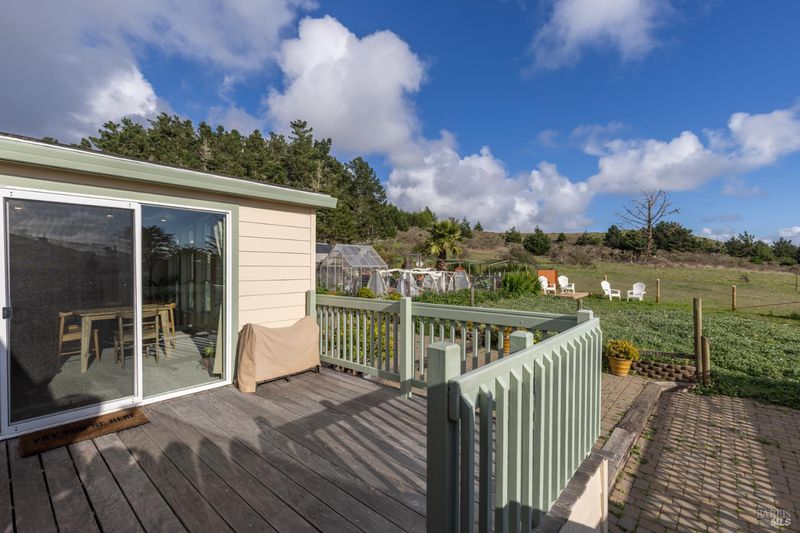 This amazing home lies on an over-sized lot with no rear neighbors. Where the Pacific meets a private sanctuary poised along the breathtaking Sonoma Coast, this impeccably appointed single-level residence offers a rare convergence of natural grandeur and refined coastal living. Set on the storied corridor of Coast Highway 1, this property presents an intimate yet generous 1,560 square feet of thoughtfully laid out space entirely on one level where every detail has been considered for those who demand both comfort and elegance. Three serene bedroom retreats and two well-appointed bathrooms create a haven of restful privacy, while the open, floor plan invites effortless flow for both quiet evenings and gracious entertaining. Open concept kitchen with granite counters and a living room with a wall of windows looking out to peaceful rolling hills. It is outdoors, however, where this residence truly distinguishes itself. A beautifully crafted paver patio sets the stage for sophisticated al fresco living beneath the vast coastal sky. The private hot tub perfectly positioned for golden hour and star-filled evenings offers a spa-like escape without leaving the property. A fully enclosed garden sanctuary provides an intimate, verdant retreat, ideal for the discerning gardener or those simply seeking a private outdoor respite. Enjoy the Sonoma Coast the way it was meant to be lived harvest from the vegetable garden, greenhouse, and chicken coop or relax with a meal and drink from your private back deck. The full splendor of the Sonoma Coast awaits from the world-renowned Bodega harbor and Doran Beach to the rugged blufftop trails of Sonoma Coast State Park and the celebrated seafood and wine culture that define this coveted stretch of California coastline. Single-level living. Timeless coastal elegance. An address unlike any other. Offered at an exceptional value on one of California's most iconic roads. Come enjoy The Sonoma Coast!