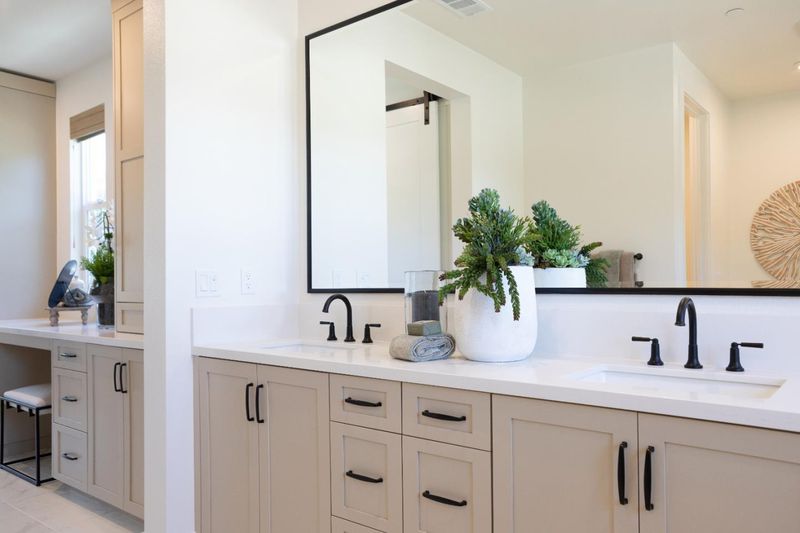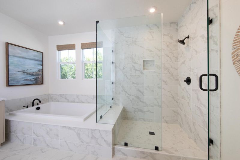 - Double Sinks, Full on Ground Floor, Half on Ground Floor, Primary - Stall Shower(s), Primary - Sunken Tub, Shower and Tub, Solid Surface, Stall Shower, Tile
