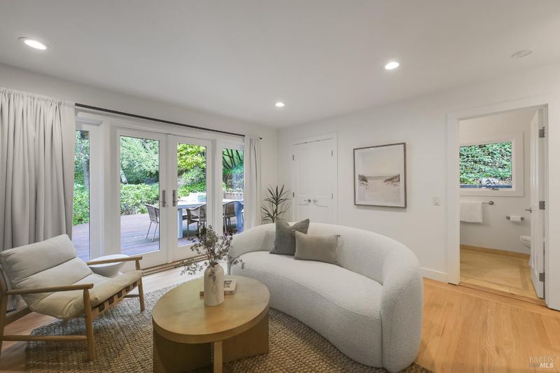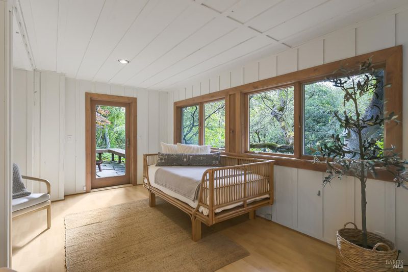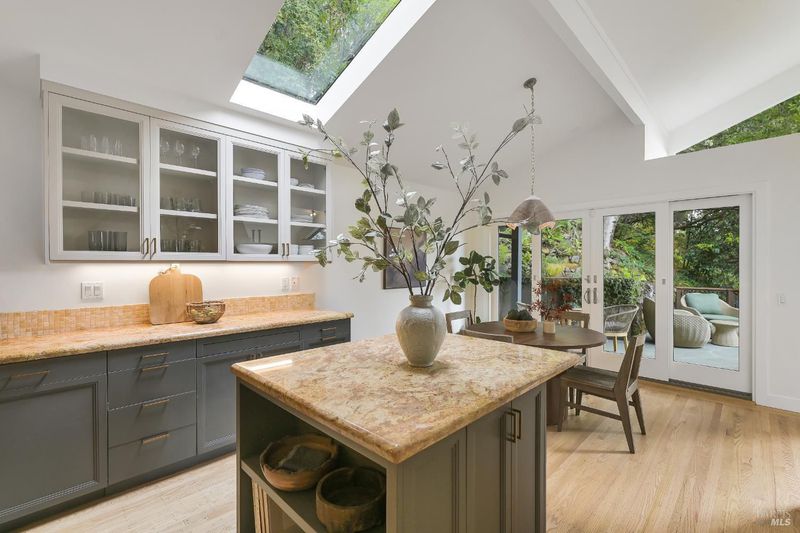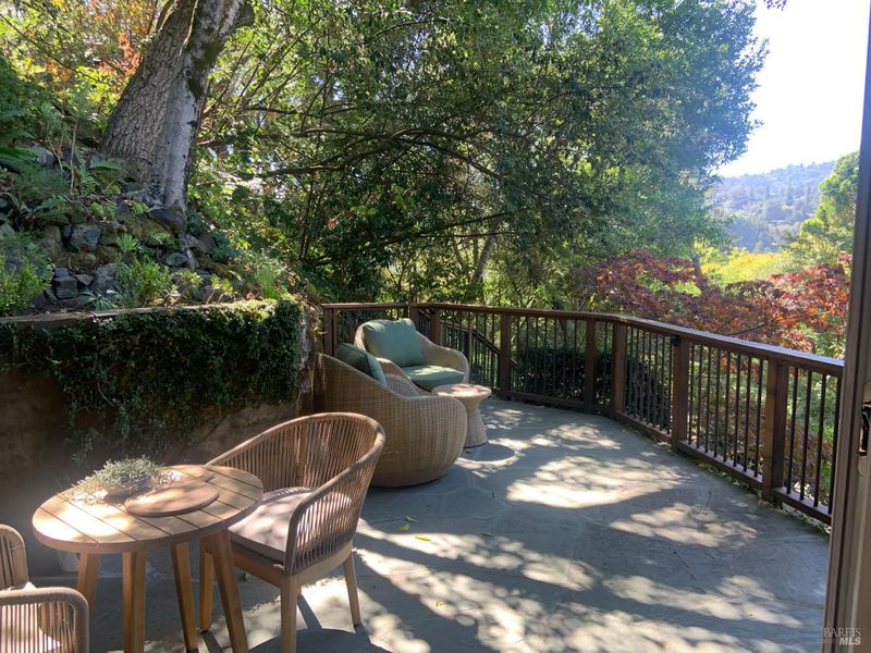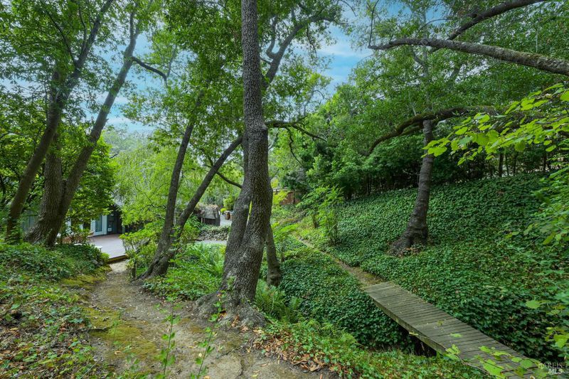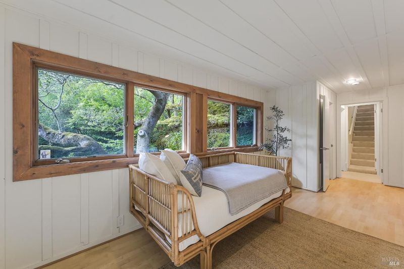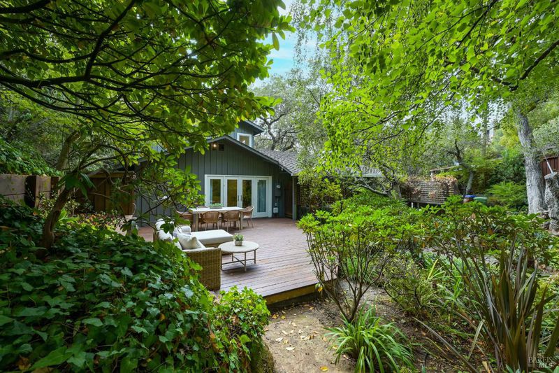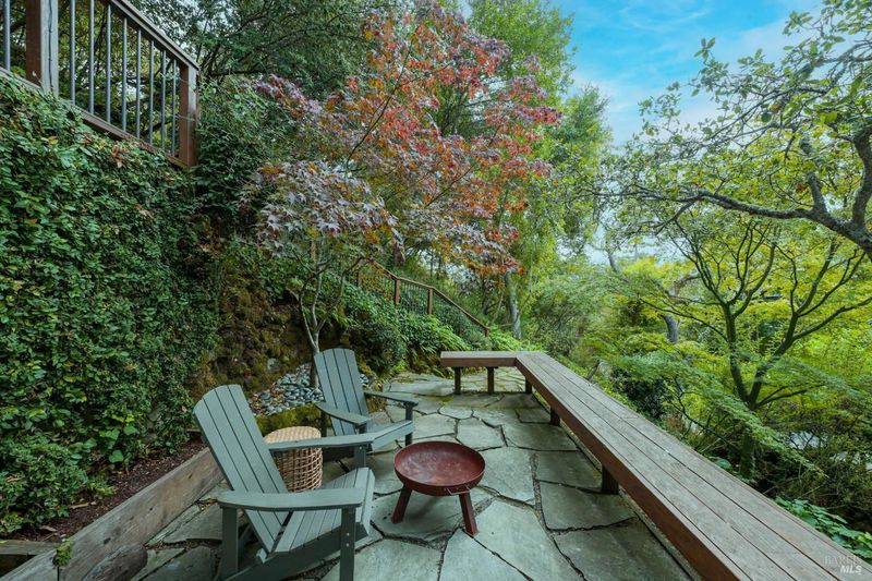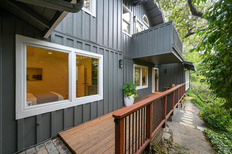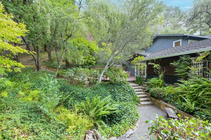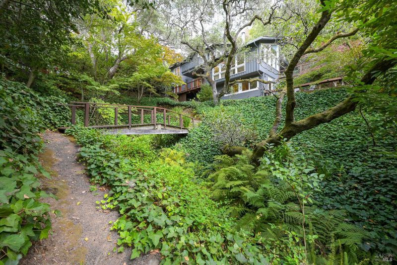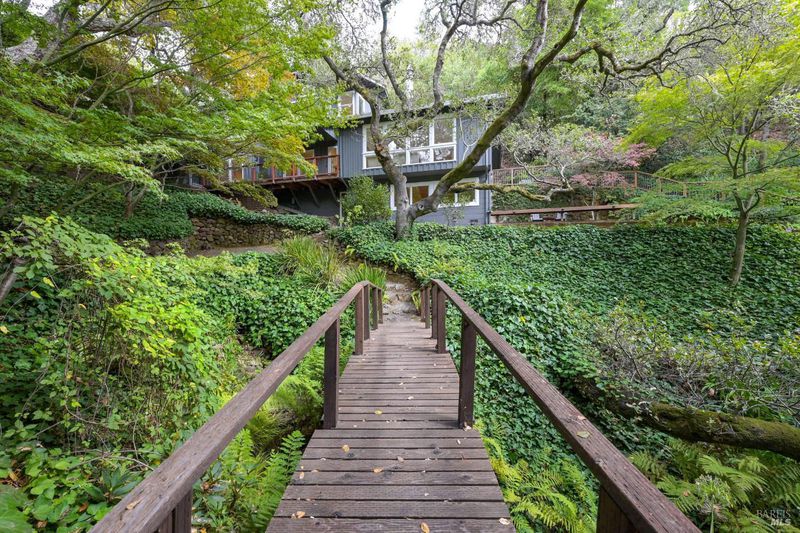 Experience the perfect blend of nature and thoughtful design in this updated 5 Bed/5 Bath Boyle Park home nestled in a park-like setting creating an oasis rarely found so close to town.The open floor plan is characterized by dramatic walls of glass, vaulted ceilings, oak floors & the warm ambiance of a wood burning fireplace. French doors lead to stone patios, sun-filled entertaining decks, winding pathways, seasonal creek, foot bridges & a lovely Zen-garden melding the indoors with the magical grounds.The main level includes two bedrooms-one an optional primary suite, a gourmet kitchen with ample storage, granite counters & breakfast nook; and beautiful open living and dining room setting, lovely enough to make your dinner guests wish they never had to leave. On the upper level is a spa-like primary suite with a walk-in shower & soaking tub positioned to delight in views of nature & French doors leading to a deck; a charming guest room with private bath, and an office nook with built-in desk & cabinets bathed in natural light. The 5th bedroom offers a peaceful patio setting inspiring creativity as art studio, writing room or guest quarters.This prime location is just minutes to historic & vibrant downtown Mill Valley renowned for its boutiques,restaurants & award-winning schools