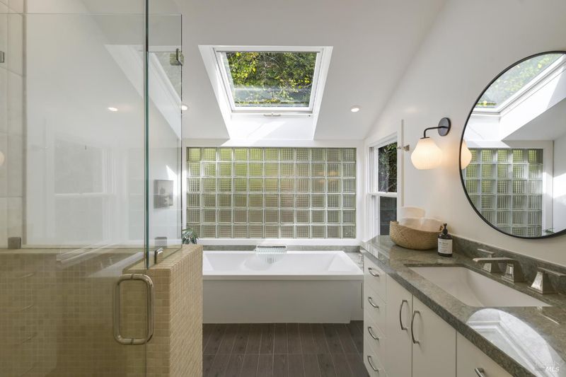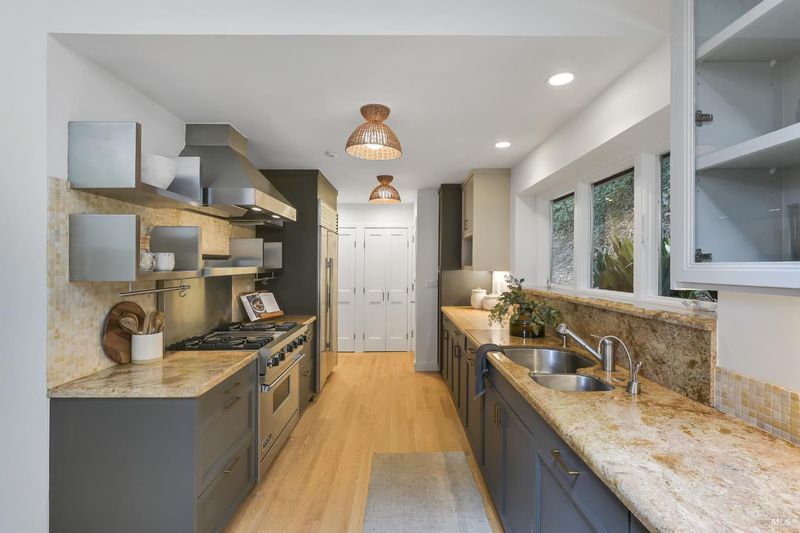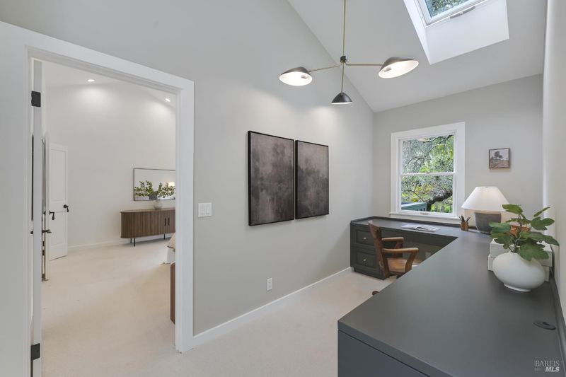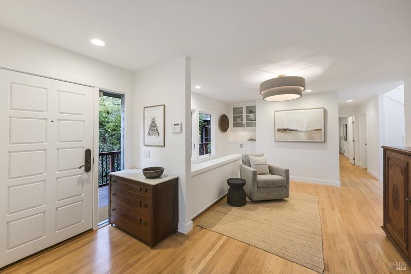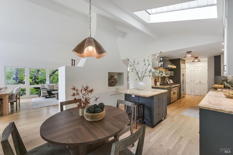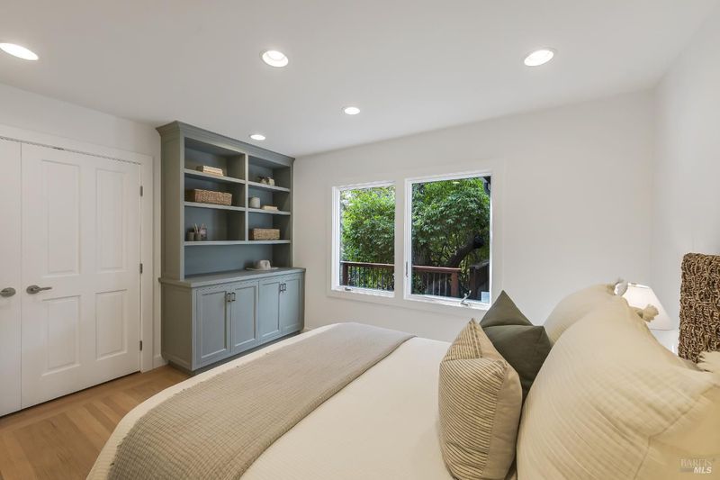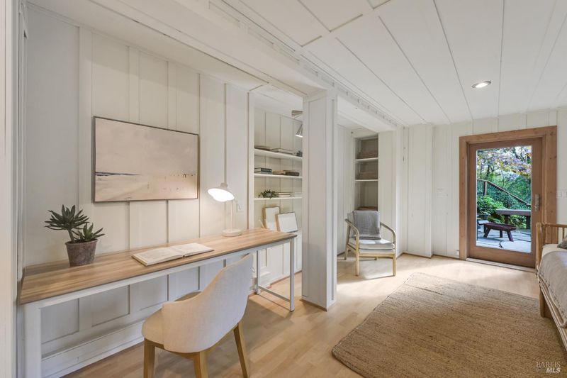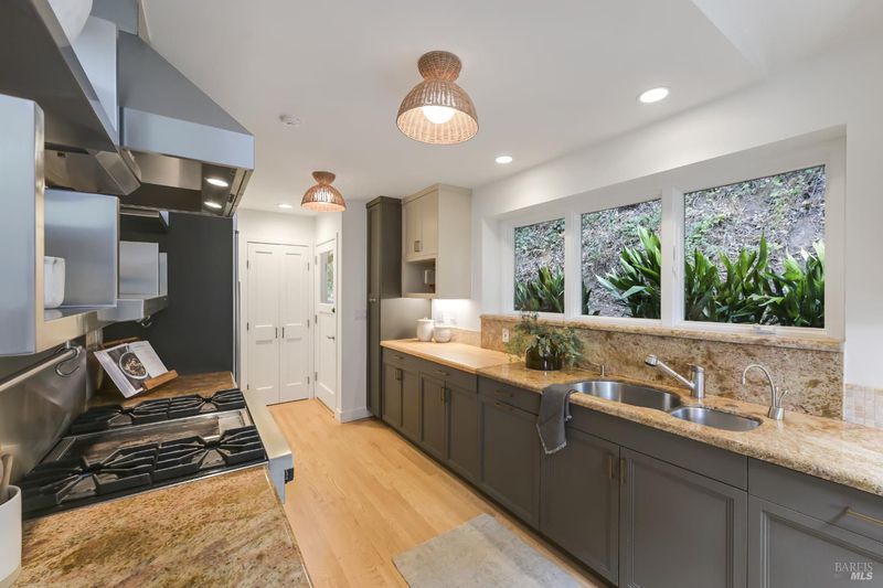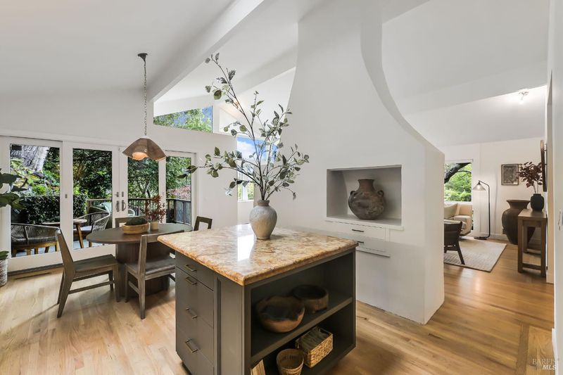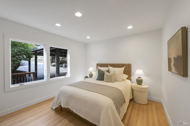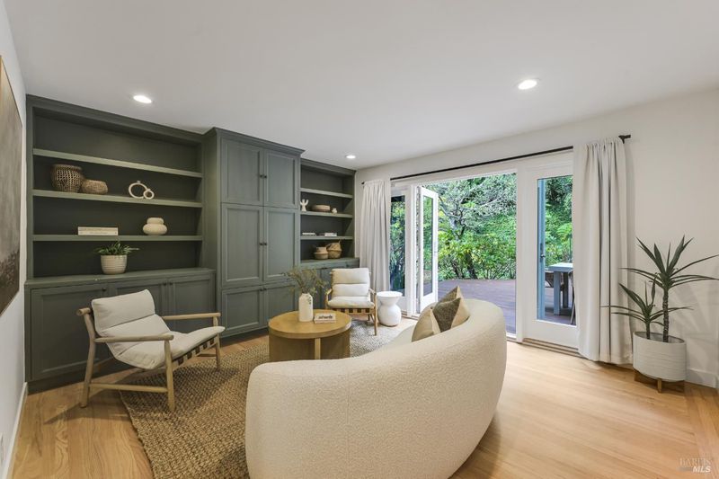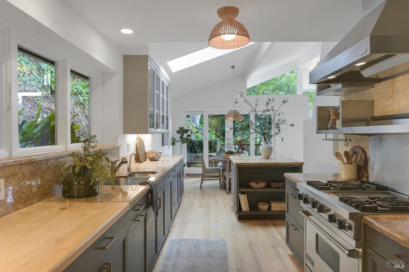 Experience the perfect blend of nature and thoughtful design in this updated 5 Bed/5 Bath Boyle Park home nestled in a park-like setting creating an oasis rarely found so close to town.The open floor plan is characterized by dramatic walls of glass, vaulted ceilings, oak floors & the warm ambiance of a wood burning fireplace. French doors lead to stone patios, sun-filled entertaining decks, winding pathways, seasonal creek, foot bridges & a lovely Zen-garden melding the indoors with the magical grounds.The main level includes two bedrooms-one an optional primary suite, a gourmet kitchen with ample storage, granite counters & breakfast nook; and beautiful open living and dining room setting, lovely enough to make your dinner guests wish they never had to leave. On the upper level is a spa-like primary suite with a walk-in shower & soaking tub positioned to delight in views of nature & French doors leading to a deck; a charming guest room with private bath, and an office nook with built-in desk & cabinets bathed in natural light. The 5th bedroom offers a peaceful patio setting inspiring creativity as art studio, writing room or guest quarters.This prime location is just minutes to historic & vibrant downtown Mill Valley renowned for its boutiques,restaurants & award-winning schools